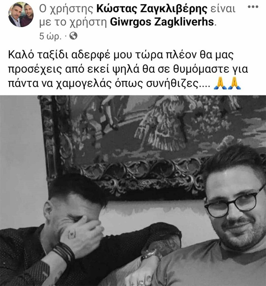 Ο Κώστας Ζαγκλιβέρης, αδερφός του Γιώργου, ανήρτησε μια κοινή τους φωτογραφία, στα μέσα κοινωνικής δικτύωσης και τον αποχαιρέτησε, σύμφωνα με το thestival.gr, γράφοντας εξής: «Καλό ταξίδι αδερφέ μου, τώρα πλέον θα μας προσέχεις από εκεί ψηλά. Θα σε θυμόμαστε για πάντα να χαμογελάς όπως συνήθιζες…»