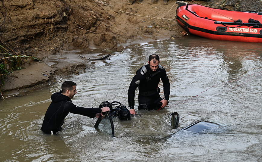 Δύτες, βάρκες αλλά και σκαπτικά μηχανήματα επιχειρούν, για να εντοπιστεί και ο οδηγός του οχήματος, με τις ελπίδες, όμως, να σβήνουν όσο περνά η ώρα, σύμφωνα με την ΕΡΤ.
