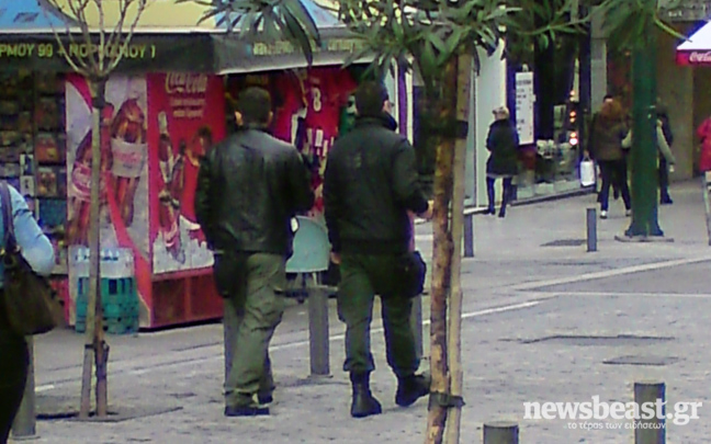 Άνδρες της Δημοτικής Αστυνομίας αλλά και ένστολοι αστυνομικοί περιπολούν, όπως βλέπετε, το κέντρο της Αθήνας. Κάνουν πεζές περιπολίες στον μεγαλύτερο εμπορικό δρόμο της πρωτεύουσας αλλά και στα στενάκια γύρω από αυτό.