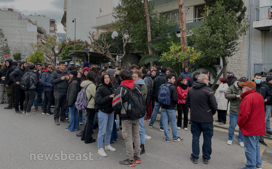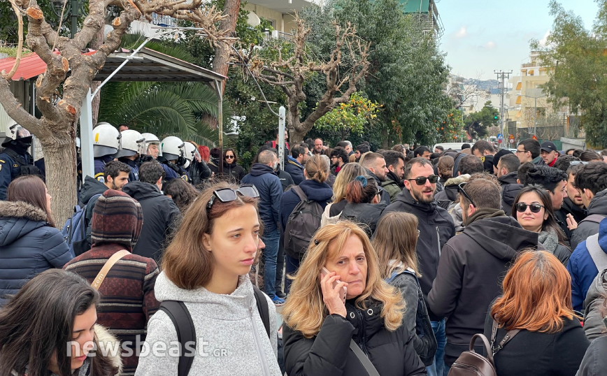 Πλήθος κόσμου έχει συγκεντρωθεί στο σημείο σε ένδειξη συμπαράστασης.