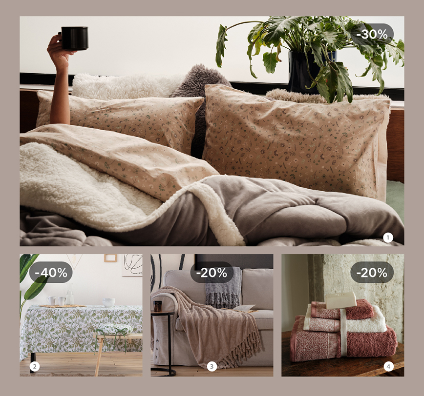 Επιλέξτε τα σεντόνια που σας ταιριάζουν για έναν υπέροχο ύπνο αλλά και για lazy ώρες στο κρεβάτι, διαλέγοντας ανάμεσα σε 100% βαμβακερά, πενιέ βαμβακοσατέν 210 κλωστών και βαμβακερό σατέν 300 κλωστών και αφεθείτε στην πολυτέλεια που προσφέρει το βελούδο και η γούνα σε ζεστές κουβέρτες και παπλώματα.