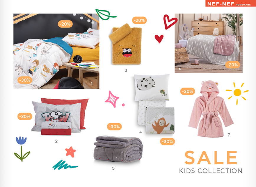 Αγκαλιάστε με τρυφερότητα το μωρό με ότι πιο απαλό, φιλικό στο δέρμα και χαρούμενο για το ίδιο και το δωμάτιο του από τη συλλογή Baby. Και δημιουργήστε ένα κόσμο γεμάτο φαντασία και in fashion σχέδια αποκλειστικά για Juniors! Σε άριστη σχέση ποιότητας – τιμής τα λευκά είδη της NEF-NEF Homeware είναι φτιαγμένα με οικολογική ευαισθησία, με υφάσματα φιλικά στον άνθρωπο και το περιβάλλον. Με τη NEF-NEF Homeware το σπίτι σας είναι ο δικός σας μοναδικός χώρος, για να απολαμβάνετε και να μοιράζεστε την κάθε στιγμή!