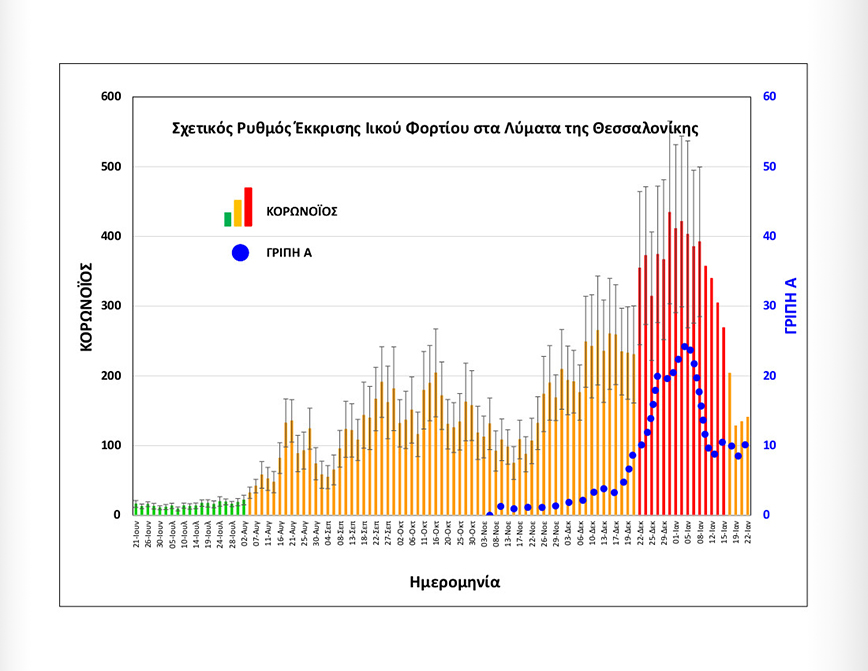 Αισθητή μείωση του ιικού φορτίου του SARS-CoV-2 και σταθεροποίηση εκείνου της γρίπης Α προκύπτει από τις μετρήσεις στα αστικά απόβλητα της Θεσσαλονίκης, στην έρευνα που διεξάγει η Ομάδα Επιδημιολογίας Λυμάτων του ΑΠΘ με την ΕΥΑΘ, σε συνεργασία με την Περιφέρεια Κεντρικής Μακεδονίας και στο πλαίσιο του Εθνικού Δικτύου του ΕΟΔΥ.
