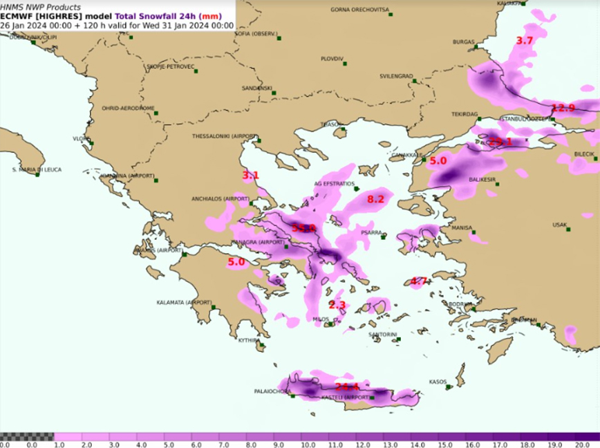 Χιόνια θα δούμε και στο νομό Αττικής, συμφωνεί και ο κ. Μαρουσάκης και συγκεκριμένα, στη γύρω ορεινή ημιορεινή ζώνη αλλά και σε χαμηλότερα υψόμετρα προς τα βόρεια τμήματα με ένα ενδεικτικό υψόμετρο τα 300 – 400 περίπου μέτρα και πάνω για τα βόρεια πάντα τμήματα.