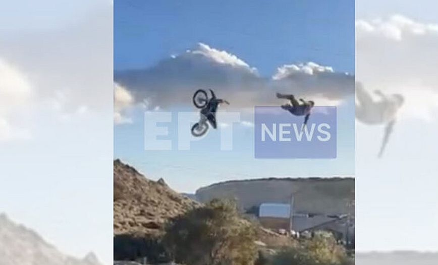 Η ΕΡΤ δημοσίευσε εικόνα η οποία όπως αναφέρει είναι από τη στιγμή του θανάσιμου τραυματισμού του 17χρονου στην Ιεράπετρα. Σύμφωνα με την ΕΡΤ, ο νεαρός οδηγός ενώ βρισκόταν στον αέρα μετά από άλμα, έφυγε από τη μηχανή με αποτέλεσμα να πέσει από ύψος 10 μέτρων στο έδαφος.