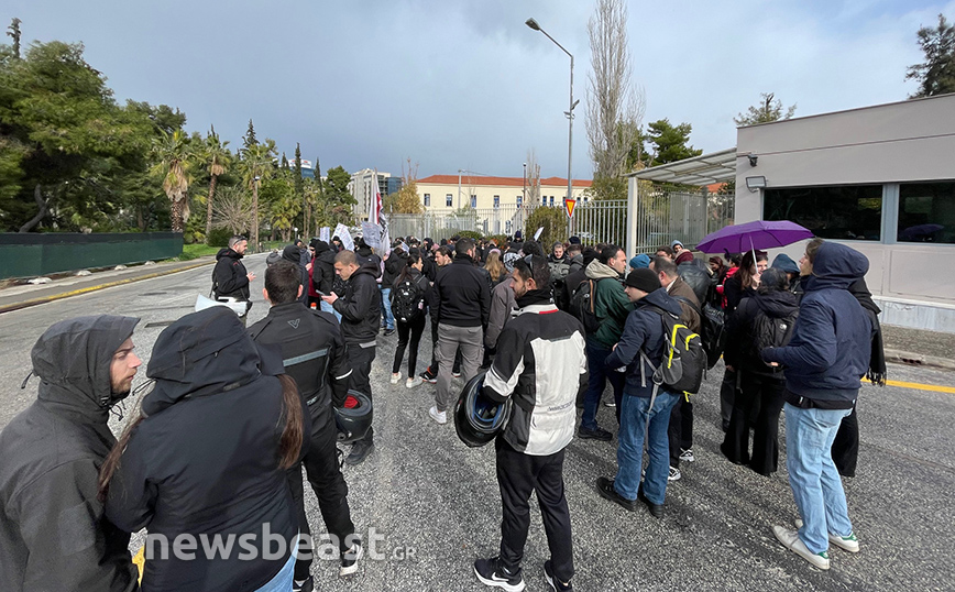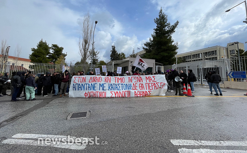 Κρατώντας πανό στα χέρια και φωνάζοντας συνθήματα, εκατοντάδες φοιτητές συγκεντρώθηκαν έξω από το Υπουργείο. Όπως αναφέρουν στην ανακοίνωσή τους, «αφού η κυβέρνηση δεν κατάφερε να σταματήσει τον αγώνα μας με ψέματα, απειλές και εκβιασμούς για “χαμένες εξεταστικές”, τώρα επιλέγει τον αυταρχισμό και την καταστολή».