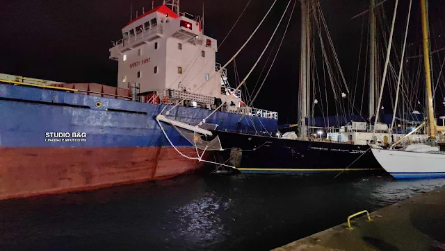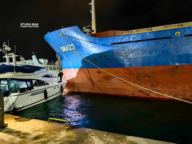 Συναγερμός σήμανε το βράδυ της Τρίτης στο λιμάνι του Ναυπλίου όταν το φορτηγό πλοίο «DIMAIZO» προσέκρουσε πάνω σε σκάφη που είχαν δέσει στην προβλήτα.