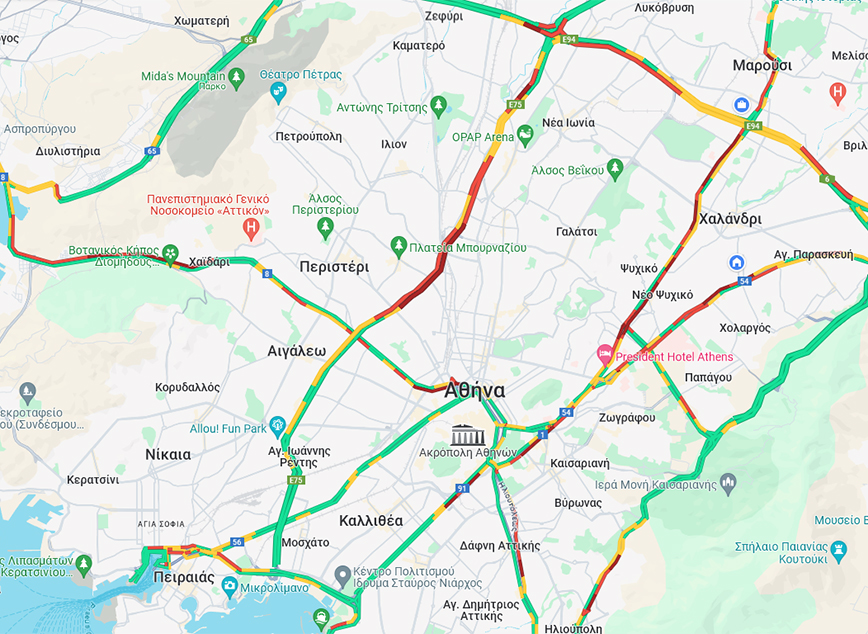 Καθυστερήσεις 10΄-15΄ σημειώνονται από τον κόμβο Πλακεντίας έως κόμβο Κηφισίας στο ρεύμα προς Ελευσίνα.