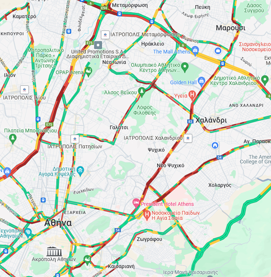 Καθυστερήσεις 10΄-15΄ σημειώνονται από τον κόμβο Πλακεντίας έως κόμβο Κηφισίας στο ρεύμα προς Ελευσίνα.