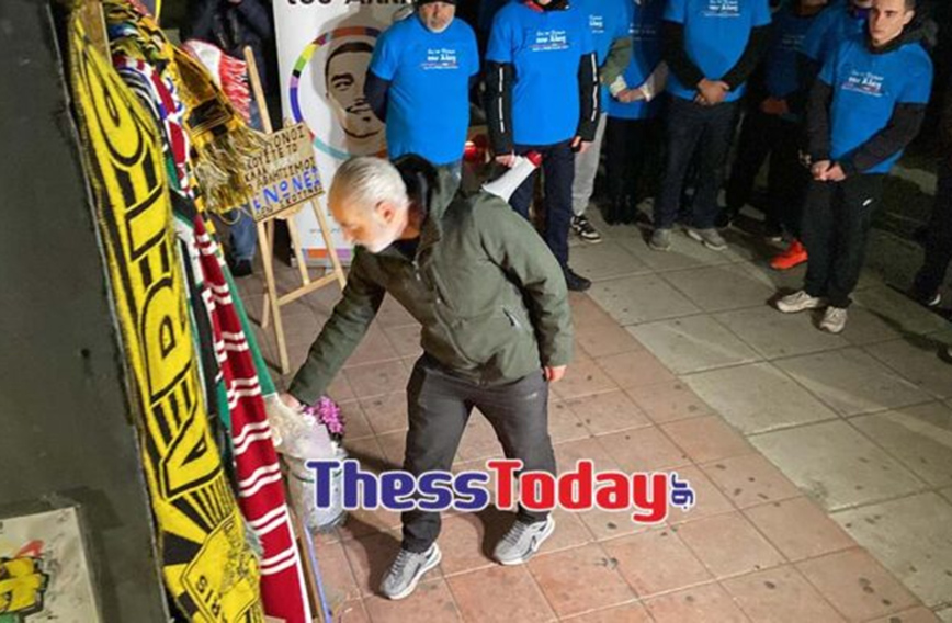 Τρία μικρά παιδιά με αναπηρία αλλά τεράστιο σθένος, ο Γιάννης, ο Λέανδρος και ο Σπύρος, φίλοι του Άρη, του ΠΑΟΚ και της ΑΕΚ αντίστοιχα, με διακριτικά των ομάδων τους, όπως και η μικρή Μάγια, θα αφήσουν συμβολικά στο σημείο της δολοφονίας από ένα λουλούδι, στέλνοντας μήνυμα αθλητικού πνεύματος, συνύπαρξης των χρωμάτων, συμπερίληψης.