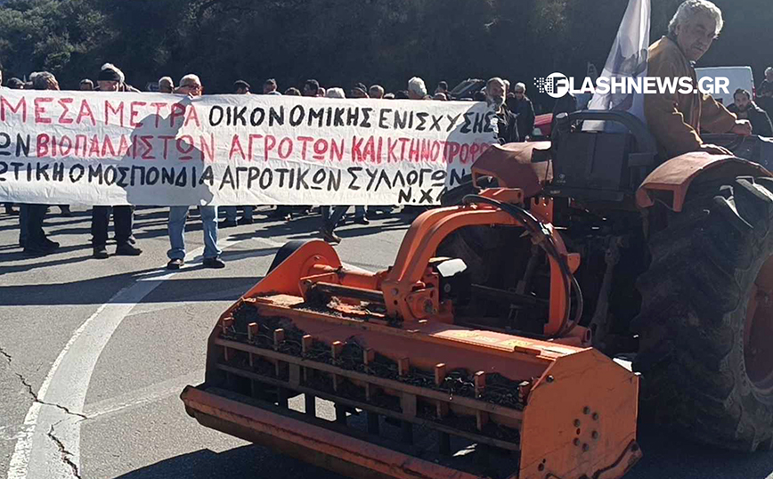 Σε συμβολικό ολιγόλεπτο αποκλεισμό της Εθνικής Οδού Χανίων-Ρεθύμνου στην περιοχή Μεγάλα Χωράφια προχώρησαν σήμερα το μεσημέρι αγρότες μετά από κάλεσμα της Ενωτικής Ομοσπονδίας Αγροτικών Συλλόγων Χανίων, η οποία με ανακοίνωσή της κάλεσε όλους τους αγρότες να συμμετέχουν στις κινητοποιήσεις, διεκδικώντας μέτρα προστασίας του εισοδήματός τους.