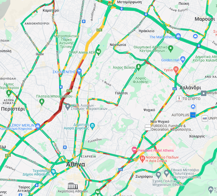 Καθυστερήσεις παρατηρούνται επίσης και σε κεντρικούς δρόμους της Αθήνας όπως η Λεωφόρος Κηφισίας.