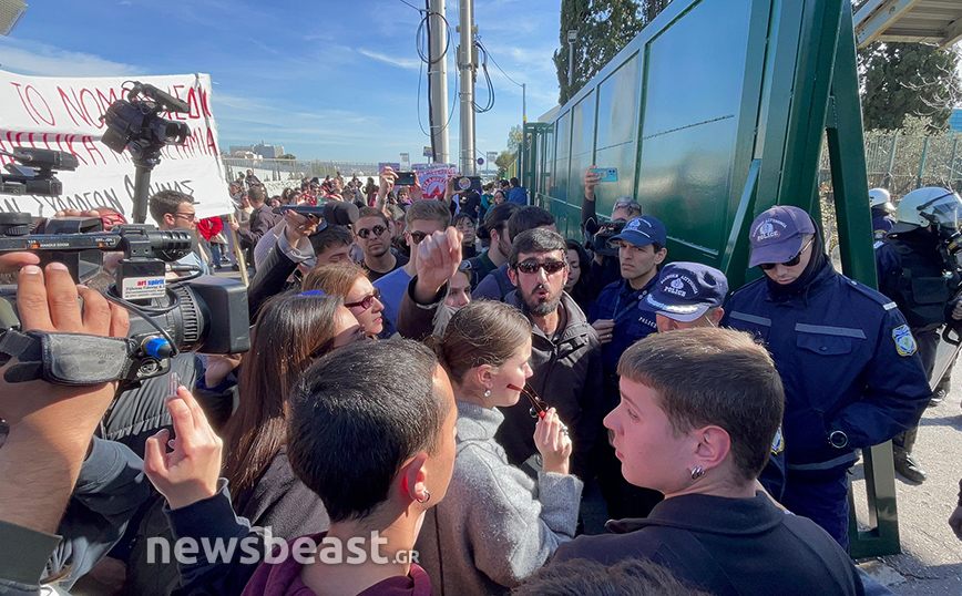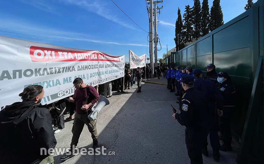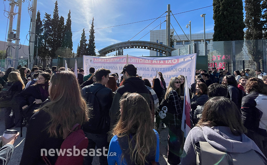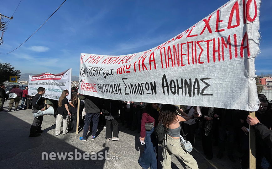 Κρατώντας μεγάλο πανό, στο οποίο αναγράφεται το σύνθημα: «Όχι στα ιδιωτικά πανεπιστήμια, αποκλειστικά δημόσιες και δωρεάν σπουδές, πτυχία με αξία, δουλειά με δικαιώματα», οι φοιτητικοί σύλλογοι της Αθήνας συγκεντρώθηκαν στο Μαρούσι.