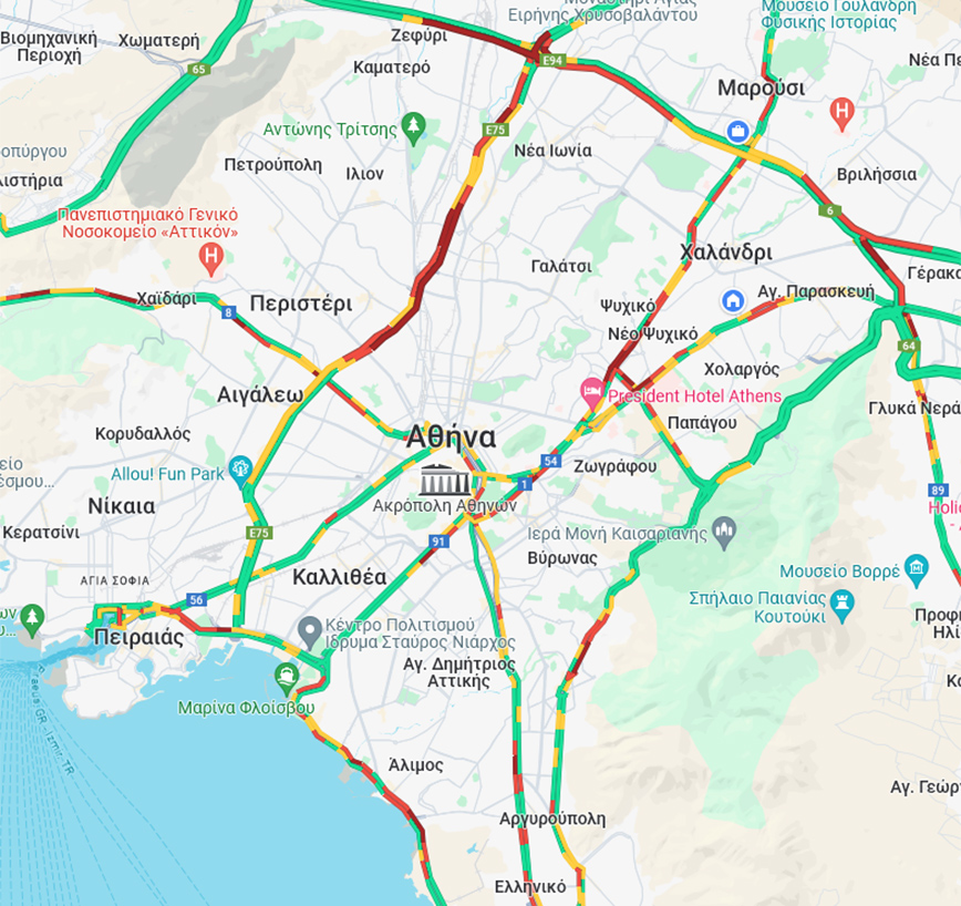 Ο χάρτης με την κίνηση τώρα στους δρόμους…