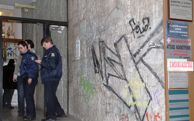 Δύο εμπρηστικές επιθέσεις σε διάστημα εννέα μόλις λεπτών σημειώθηκαν το μεσημέρι στη Θεσσαλονίκη. Σύμφωνα με την αστυνομική διεύθυνση, στις 13:17, εξερράγη αυτοσχέδιος εμπρηστικός μηχανισμός αποτελούμενος από γκαζάκια έξω από το γραφείο του βουλευτή του ΛΑΟΣ Άγγελου Κολοκοτρώνη, στο δεύτερο όροφο κτιρίου που βρίσκεται επί της οδού Μητροπόλεως 74. Από την έκρηξη και τα σπασμένα τζάμια, τραυματίστηκαν ελαφρά δύο γυναίκες, και διακομίστηκαν στο νοσοκομείο για τις πρώτες βοήθειες.