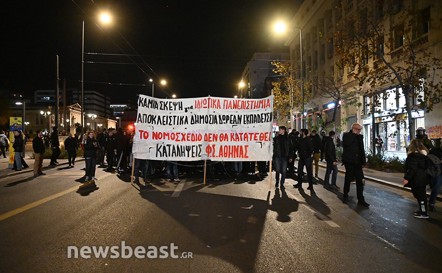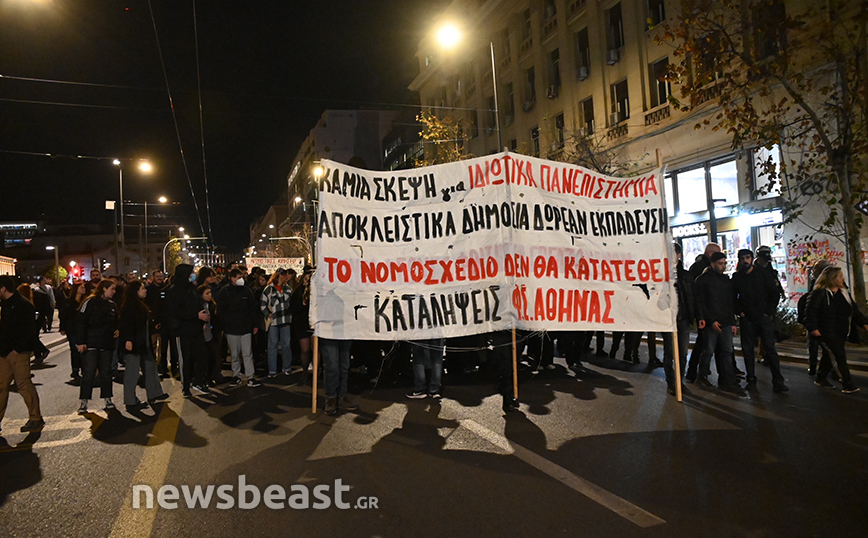 Σε εξέλιξη βρίσκεται πορεία φοιτητών στο κέντρο της Αθήνας, ενάντια στο νομοσχέδιο της κυβέρνησης για την ίδρυση μη κρατικών μη κερδοσκοπικών πανεπιστημίων.