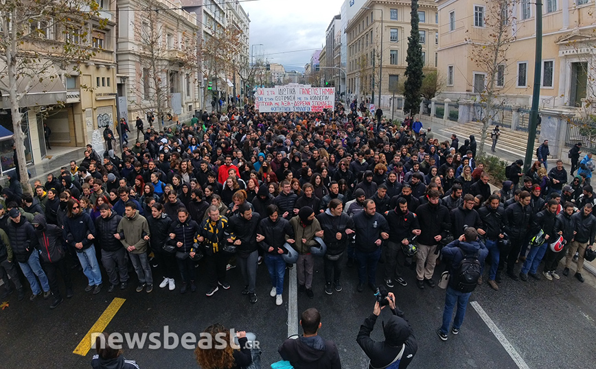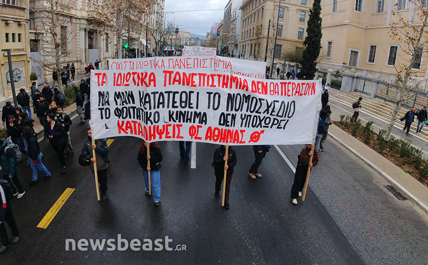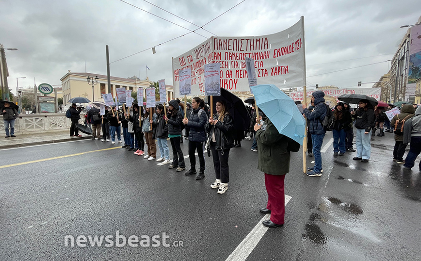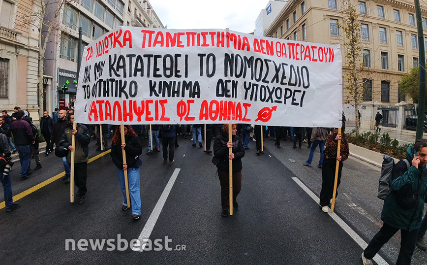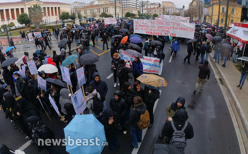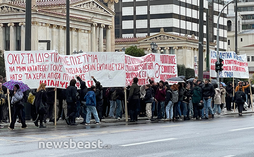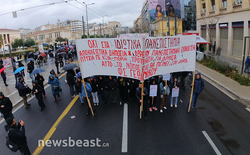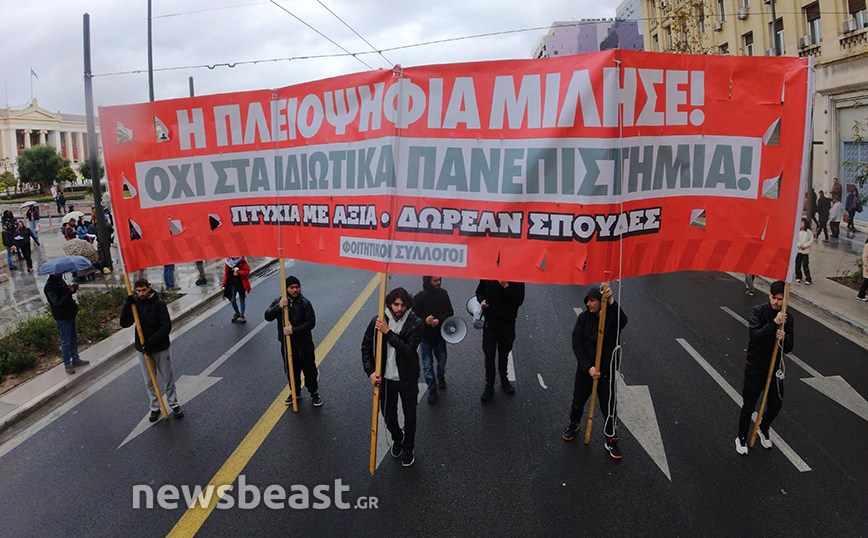 Νέο πανεκπαιδευτικό συλλαλητήριο υπό βροχή πραγματοποιείται στο κέντρο της Αθήνας ως αντίδραση στο νομοσχέδιο για την ίδρυση μη κρατικών πανεπιστημίων. Στο πανελλαδικό πανεκπαιδευτικό συλλαλητήριο έχουν δηλώσει συμμετοχή φοιτητικοί σύλλογοι, μαθητές, εργαζόμενοι σε ΑΕΙ και μέλη ΔΕΠ (Διδακτικό Ερευνητικό Προσωπικό).