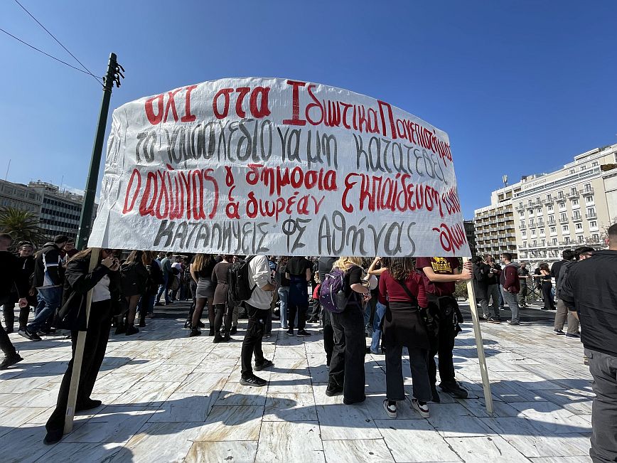 Συγκέντρωση και πορεία στο Σύνταγμα πραγματοποίησαν φοιτητικοί σύλλογοι της Αθήνας την Κυριακή, εργατικά σωματεία και συλλογικοί φορείς με κεντρικό σύνθημα «Ο αγώνας για δημόσια και δωρεάν εκπαίδευση είναι αγώνας όλων μας».