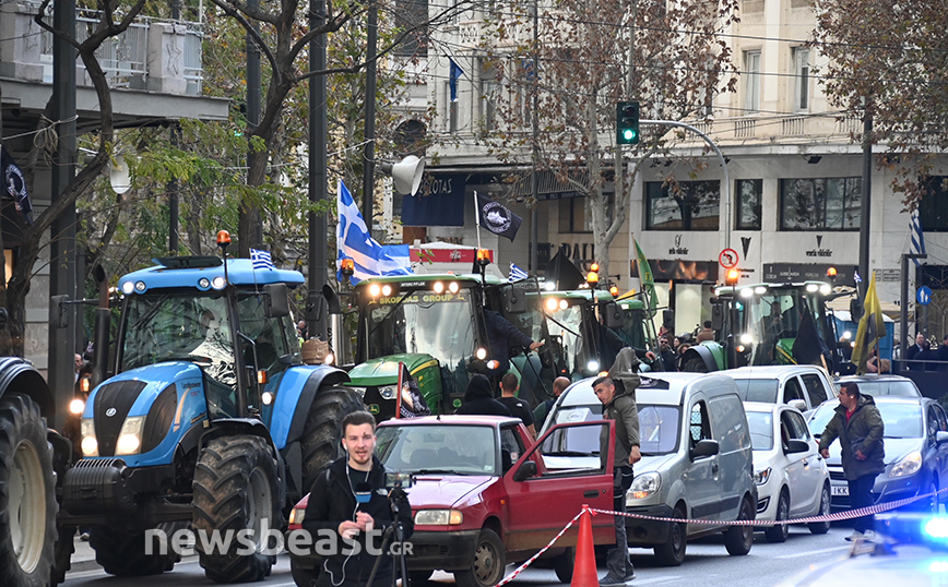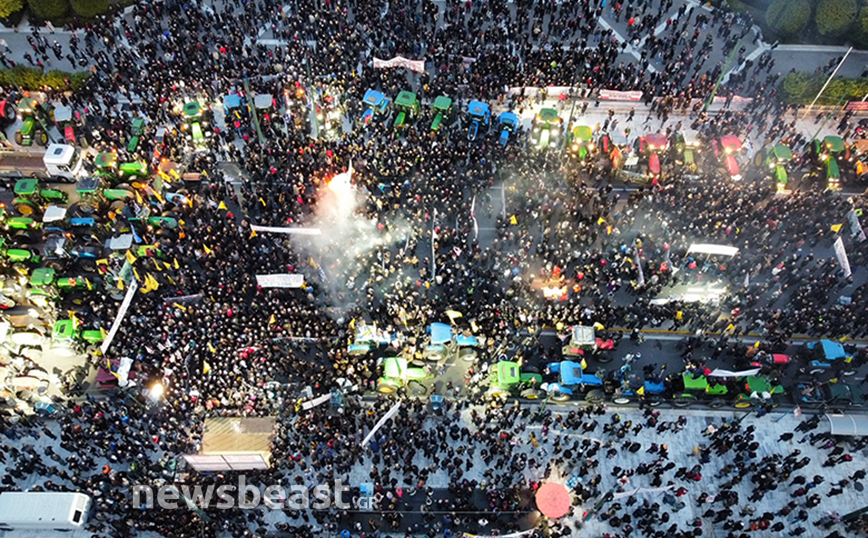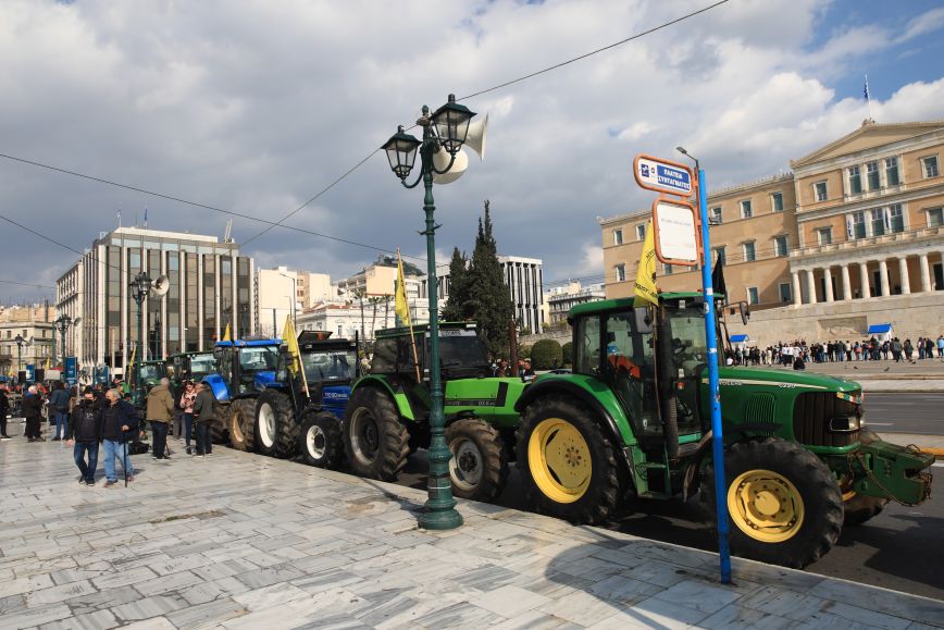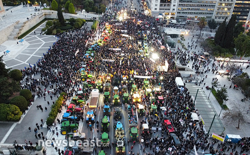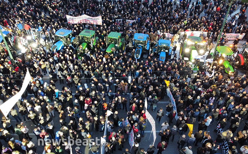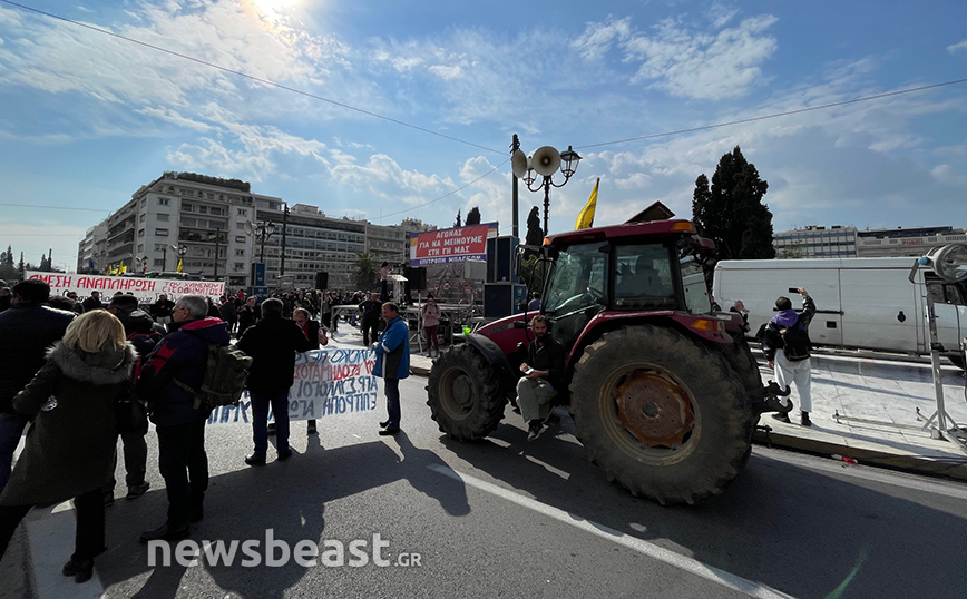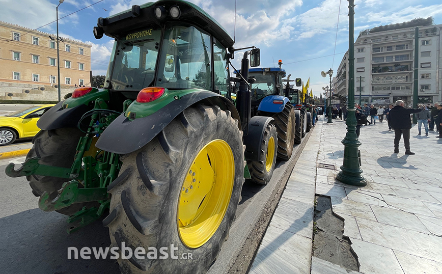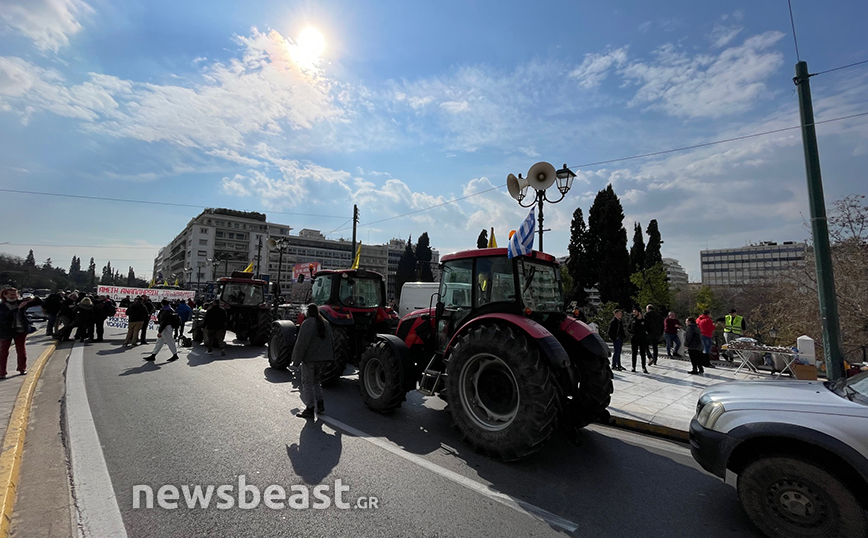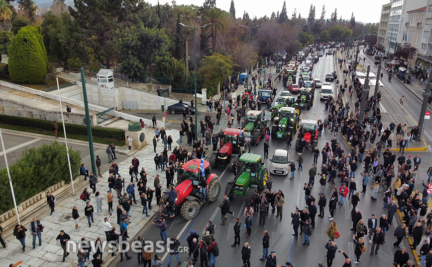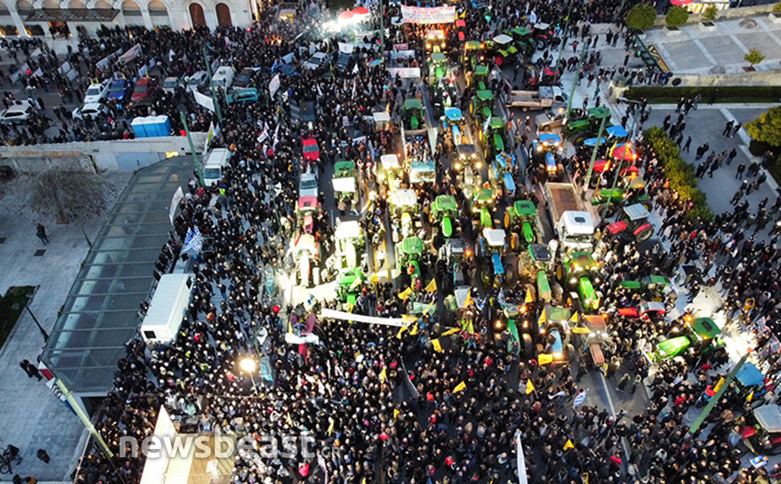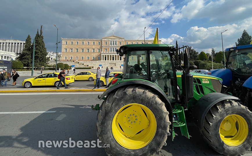Μπροστά από το Κοινοβούλιο, η Λεωφόρος Βασιλίσσης Σοφίας είναι γεμάτη από τρακτέρ και επαγγελματικά οχήματα και ο κόσμος πολύς, αφού στους διαδηλωτές έχουν προστεθεί ομοσπονδίες, σωματεία και συνδικάτα εργαζομένων από δεκάδες τομείς, που βρίσκονται στο Σύνταγμα για να συμπαρασταθούν στους αγρότες, τους οποίους υποδέχτηκαν με το σύνθημα: «Εργατιά, αγροτιά ενωμένοι μια γροθιά».
