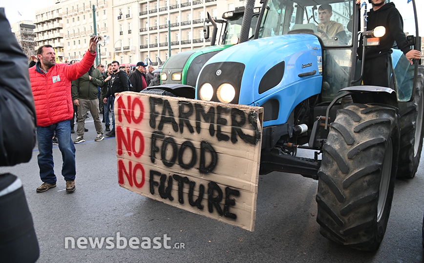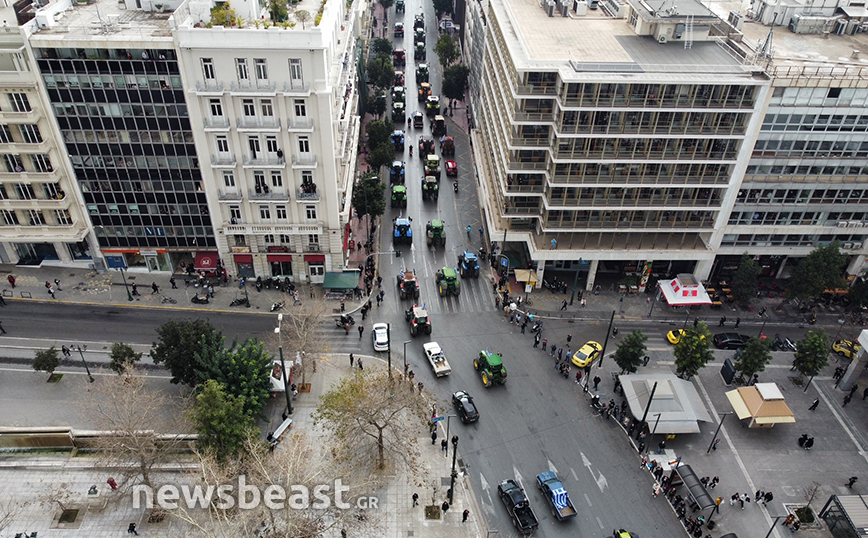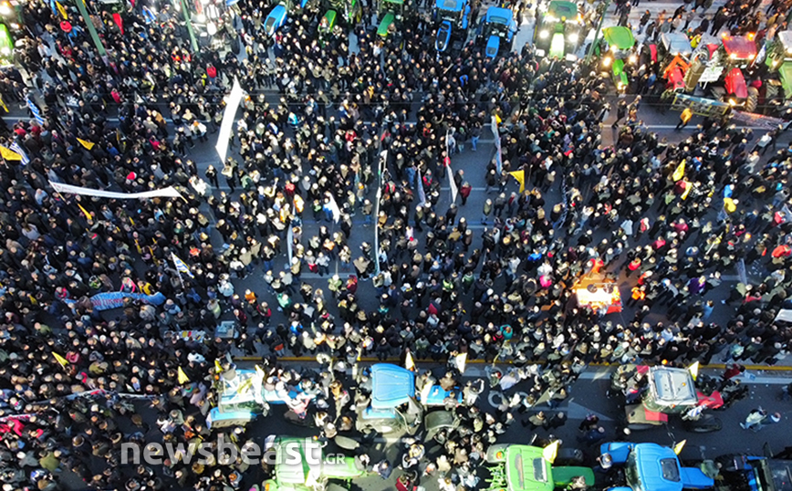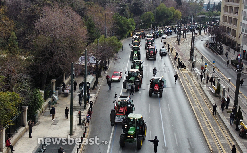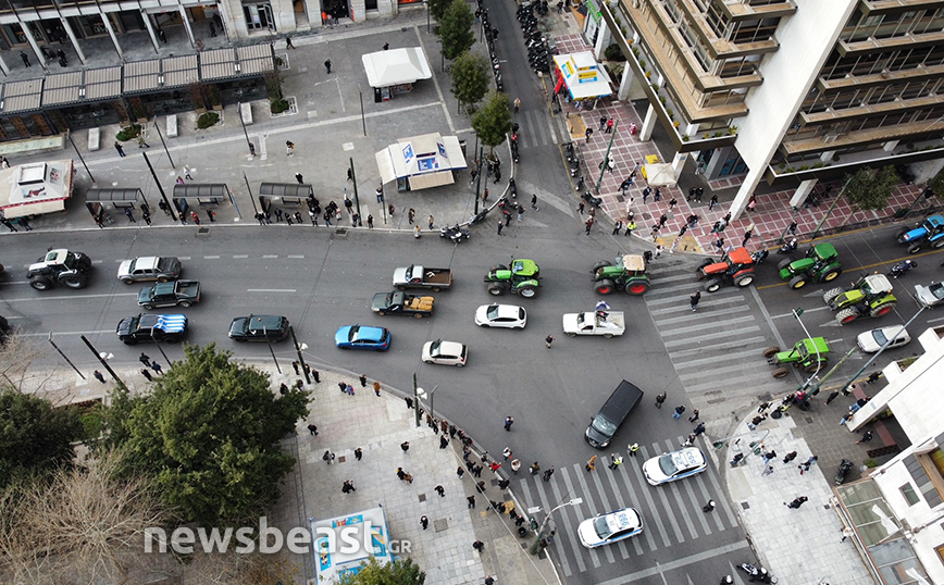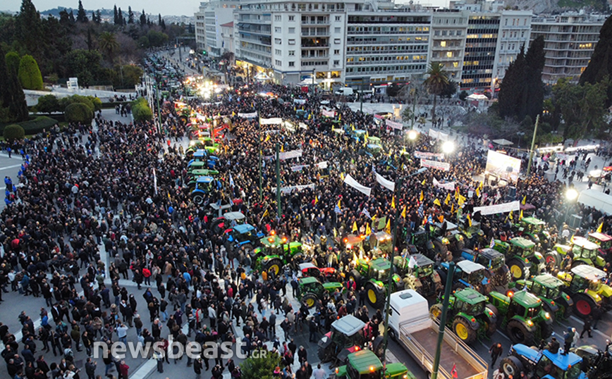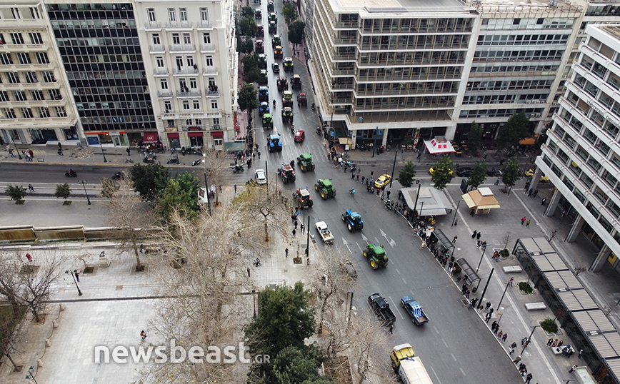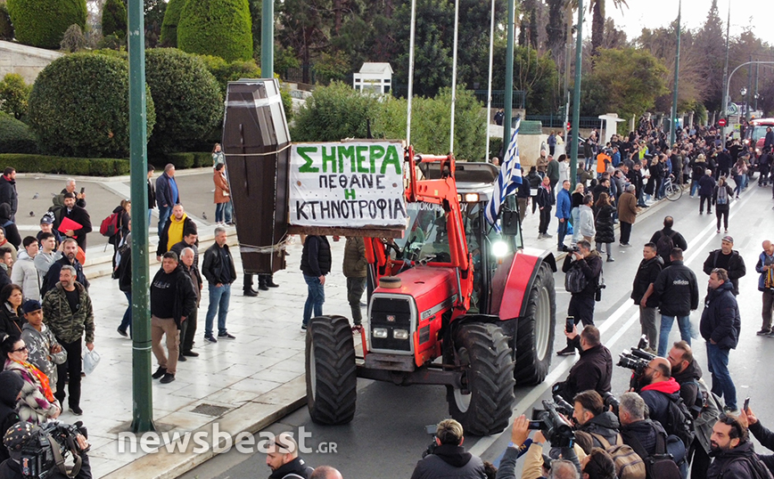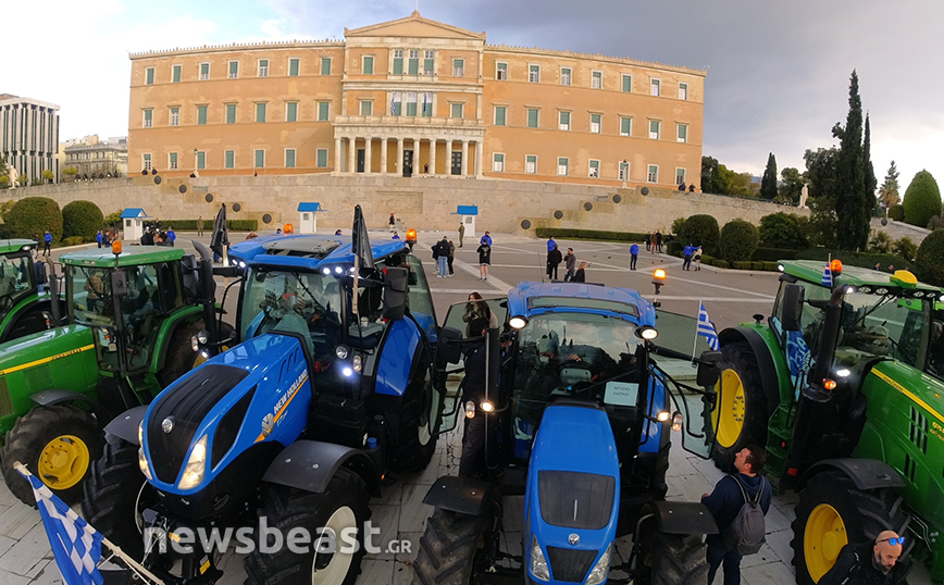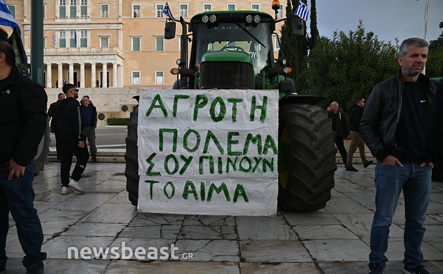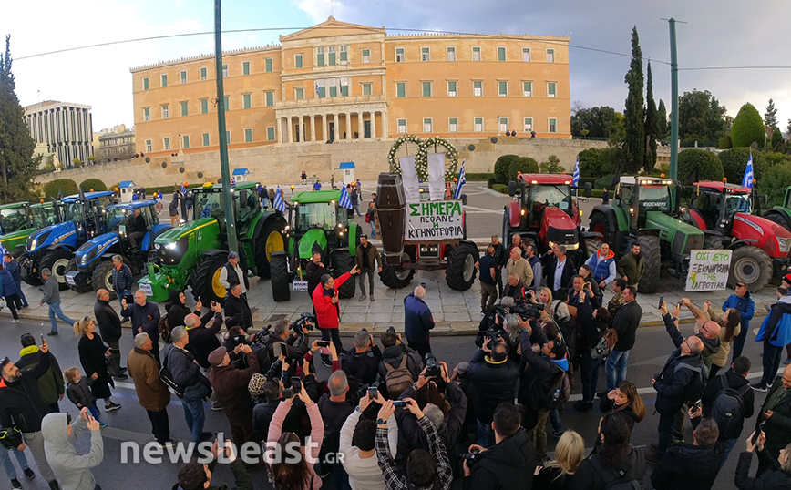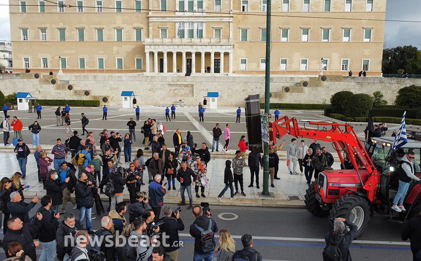 Μπροστά από το Κοινοβούλιο, η Λεωφόρος Βασιλίσσης Σοφίας είναι γεμάτη από τρακτέρ και επαγγελματικά οχήματα και ο κόσμος πολύς, αφού στους διαδηλωτές έχουν προστεθεί ομοσπονδίες, σωματεία και συνδικάτα εργαζομένων από δεκάδες τομείς, που βρίσκονται στο Σύνταγμα για να συμπαρασταθούν στους αγρότες, τους οποίους υποδέχτηκαν με το σύνθημα: «Εργατιά, αγροτιά ενωμένοι μια γροθιά».