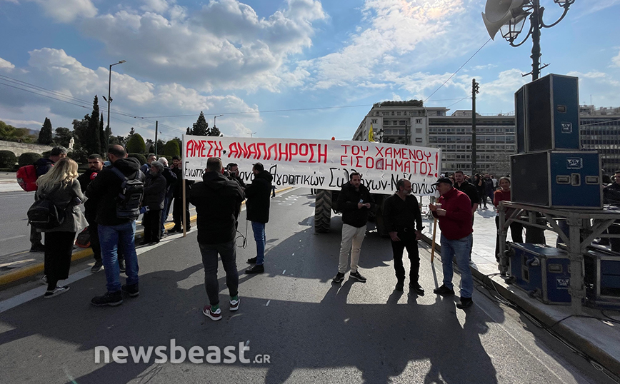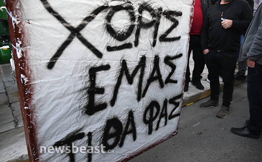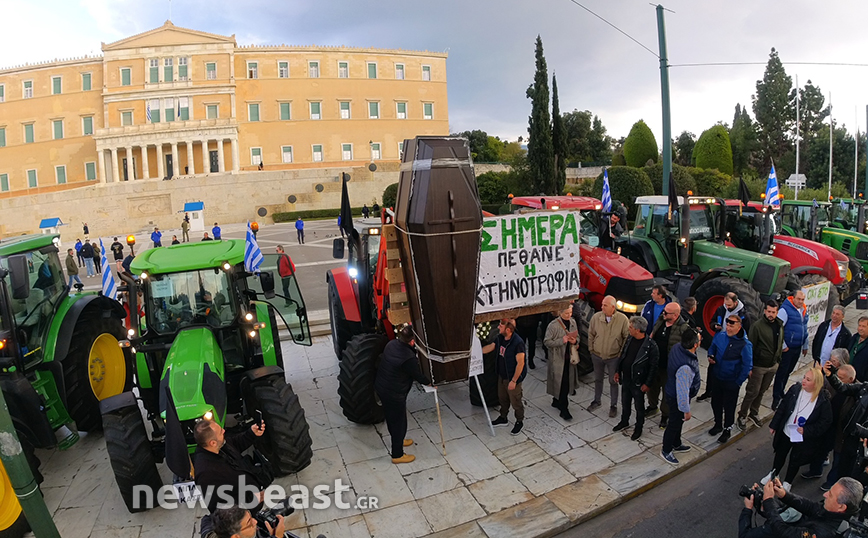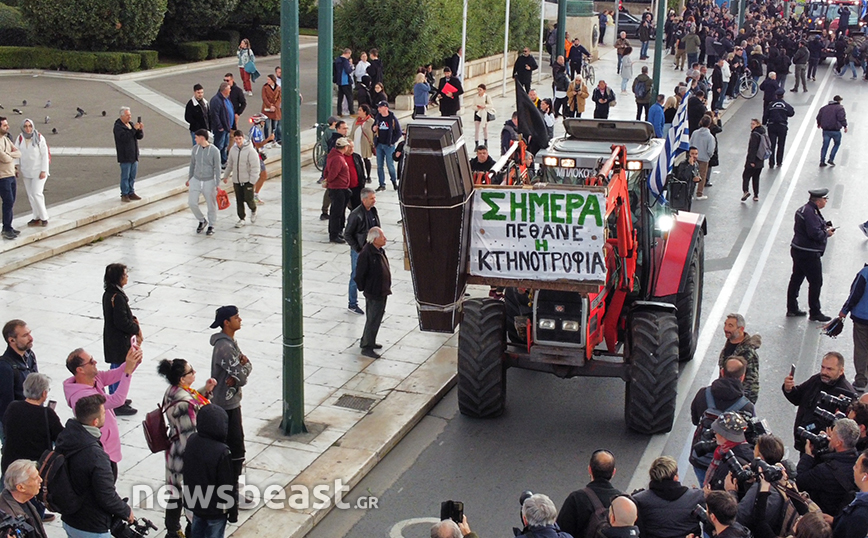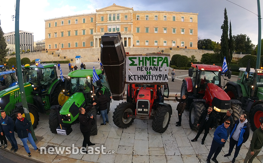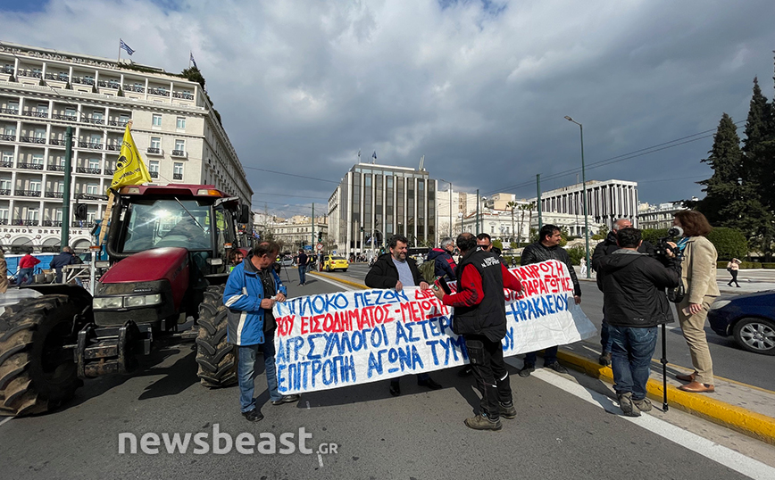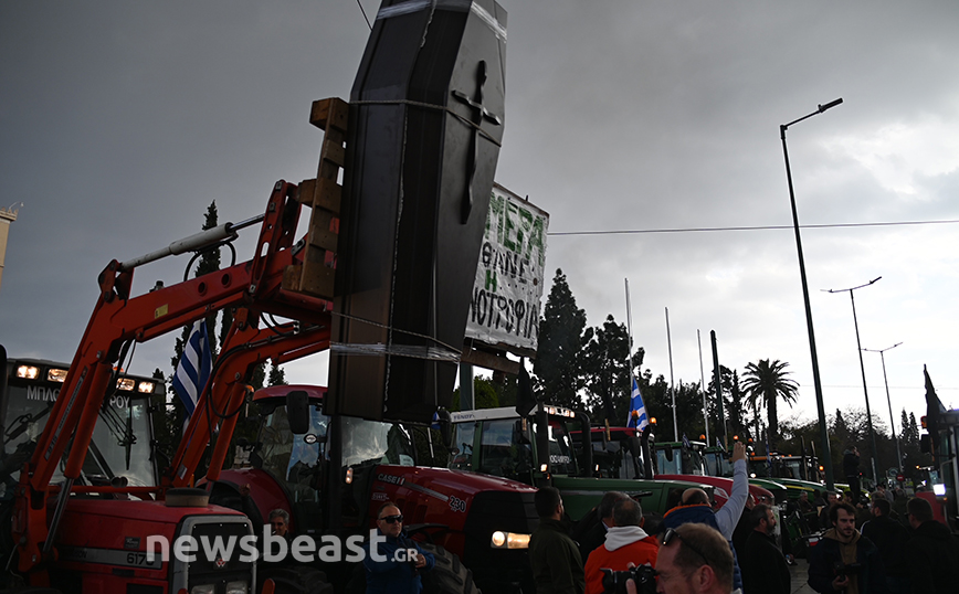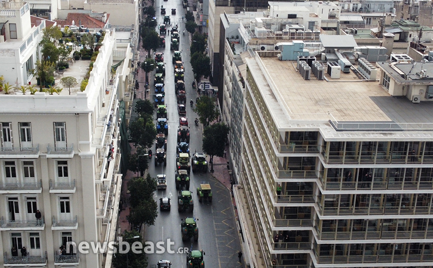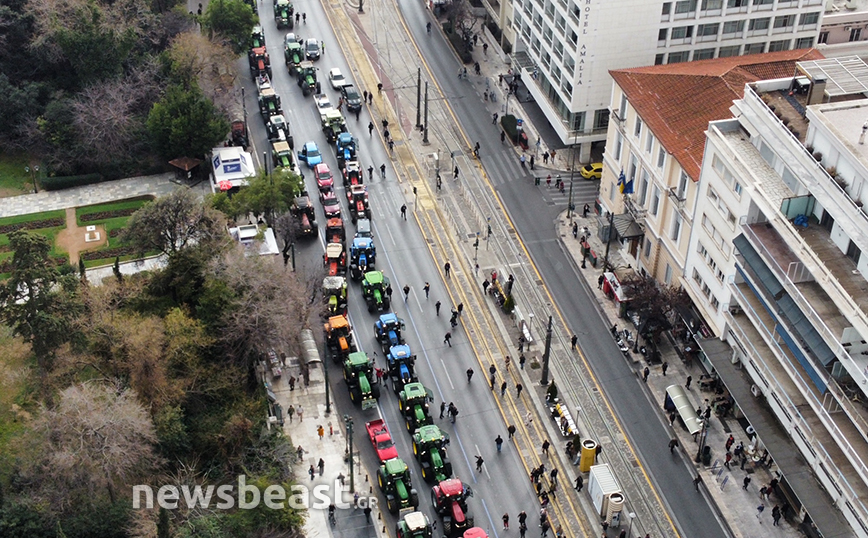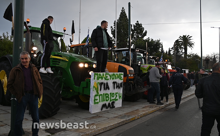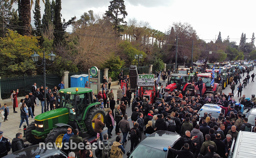 Μπροστά από το Κοινοβούλιο, η Λεωφόρος Βασιλίσσης Σοφίας είναι γεμάτη από τρακτέρ και επαγγελματικά οχήματα και ο κόσμος πολύς, αφού στους διαδηλωτές έχουν προστεθεί ομοσπονδίες, σωματεία και συνδικάτα εργαζομένων από δεκάδες τομείς, που βρίσκονται στο Σύνταγμα για να συμπαρασταθούν στους αγρότες, τους οποίους υποδέχτηκαν με το σύνθημα: «Εργατιά, αγροτιά ενωμένοι μια γροθιά».