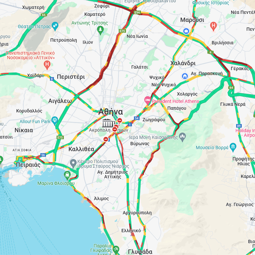 Ο χάρτης με την κίνηση τώρα στους δρόμους…