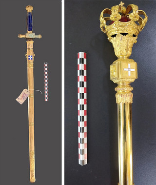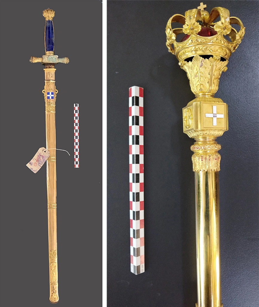 Ο Όθων, πρίγκιπας της Βαυαρίας, του οίκου των Βίττελσμπαχ, βασίλευσε στην Ελλάδα με τον τίτλο Βασιλεύς της Ελλάδος από το 1832 έως το 1862. Το στέμμα και το σκήπτρο κατασκευάστηκαν από το περίφημο παρισινό οίκο χρυσοχοΐας Fossin et Fils, ενώ για το ξίφος συνεργάστηκαν οι Fossin με τον ξιφοποιό Jules (;) Manceaux, του ομώνυμου οίκου οπλοποιών.