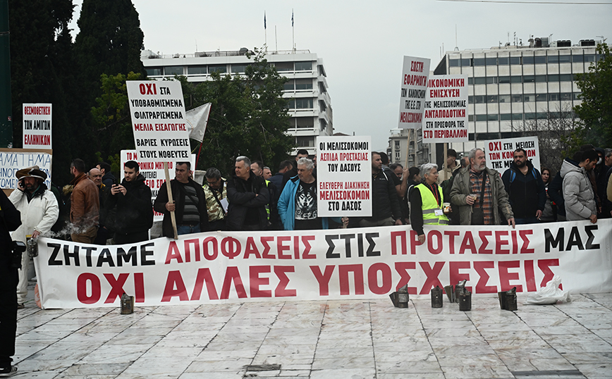 Οι μελισσοκόμοι αναμένεται να παραμείνουν στην πλατεία Συντάγματος μέχρι αργά.
