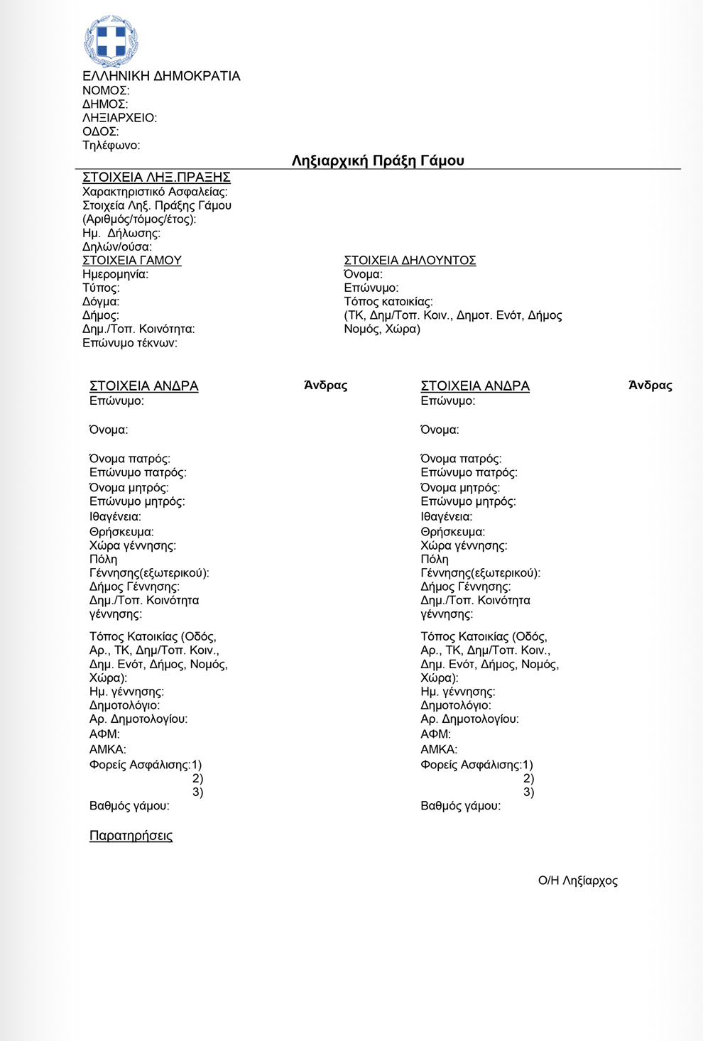 Ληξιαρχική πράξη γάμου άνδρα – άνδρα