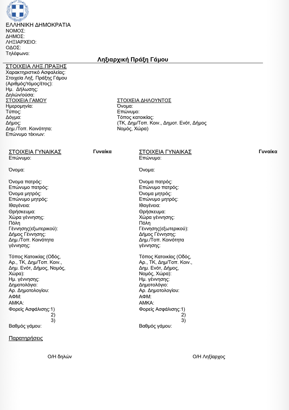 Ακολουθούν αναλυτικά οι νέες ληξιαρχικές πράξεις: