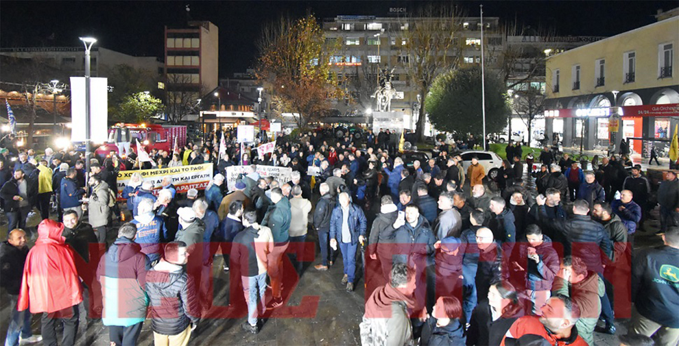Μετά το μεγαλειώδες συλλαλητήριο της Αθήνας και έχοντας συμπληρώσει περίπου 35 ημέρες στο μπλόκο, οι αγρότες έφθασαν σε κομβόι στις 18:30 στο κέντρο της πόλης με δεκάδες τρακτέρ. Εκπρόσωποι τοπικών φορέων, συλλόγων, αλλά και πλήθος κόσμου εξέφρασαν τη στήριξή τους στον αγώνα τους, «βουλιάζοντας» την κεντρική πλατεία.