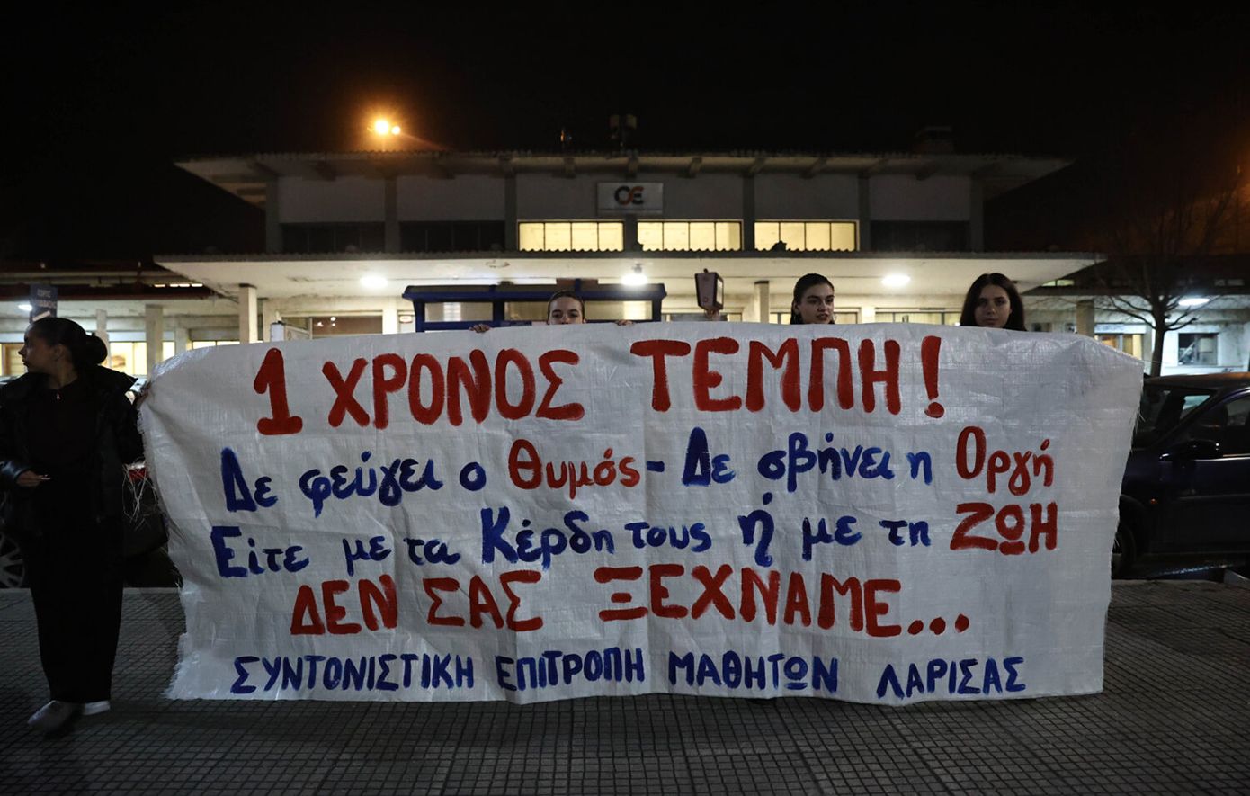 Δεκάδες φοιτητές και μαθητές της Λάρισας, μέσα σε φορτισμένο κλίμα, βρέθηκαν το βράδυ της Τρίτης στην πλατεία του ΟΣΕ, μία ημέρα πριν συμπληρωθεί ένας χρόνος από το τραγικό δυστύχημα των Τεμπών.