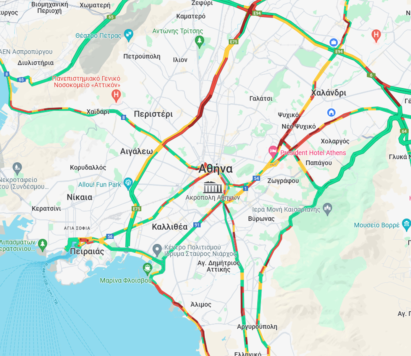 Πρόβλημα εντοπίζεται και στην οδό Πέτρου Ράλλη, στο ρεύμα κυκλοφορίας προς Κηφισό, στο ύψος της οδού Γρ. Λαμπράκη, στην περιοχή του Κορυδαλλού.