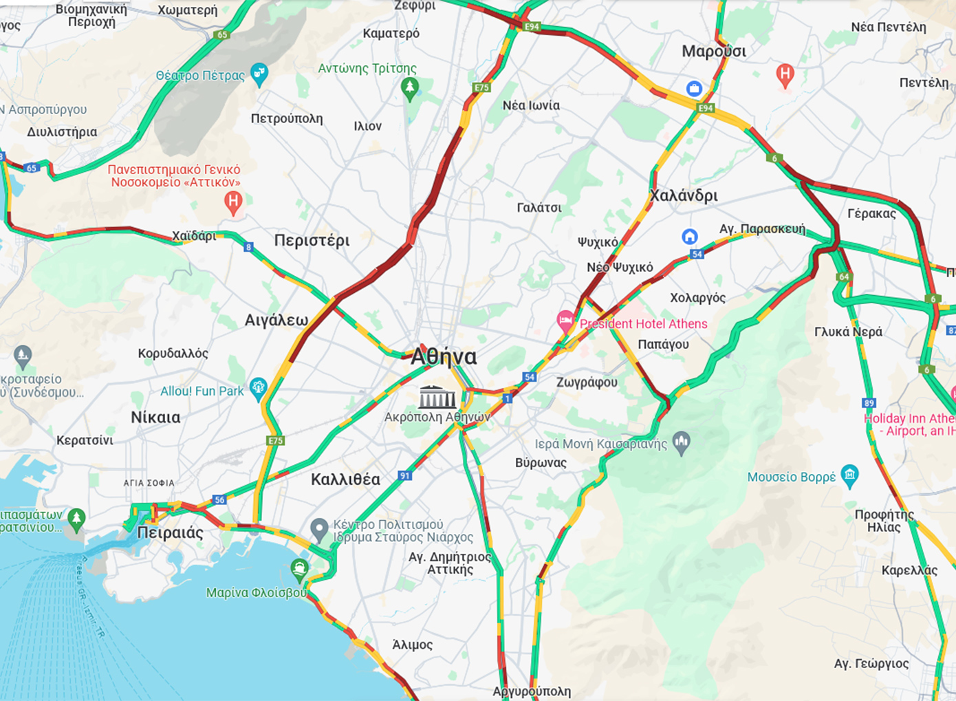 Σύμφωνα με τη σχετική ενημέρωση από την Αττική Οδό καθυστερήσεις άνω των 30΄ σημειώνονται από κόμβο Ανθούσας έως κόμβο Κηφισίας. Άνω των 30΄ στην περιφερειακή Υμηττού από κόμβο Αγίας Παρασκευής έως των κόμβο Κηφισίας.