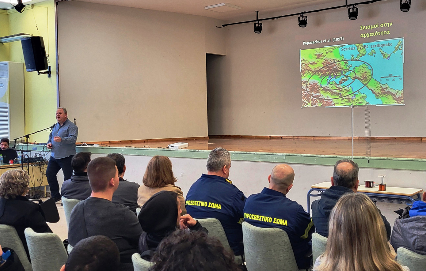 Ο καθηγητής του ΑΠΘ, στην ομιλία του εξήγησε ότι «η πόλη της Δράμας είναι μια πολύ ιδιαίτερη πόλη όσον αφορά τη σεισμικότητα, καθώς παρουσιάζει συγκεκριμένες δυσκολίες όσον αφορά την αντιμετώπιση του σεισμικού κινδύνου, που είναι σπάνιος».