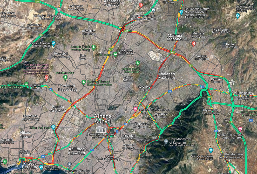 Παράλληλα, η κυκλοφορία διεξάγεται με δυσκολία από το Μοσχάτο μέχρι και τη Δεκελείας.