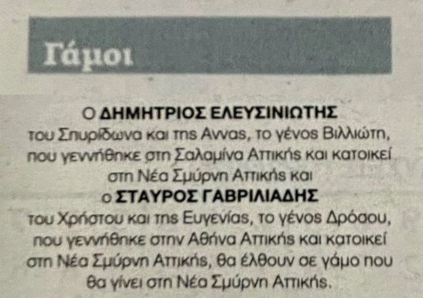 Μάλιστα η αγγελία του γάμου τους είχε δημοσιευτεί στην εφημερίδα «Τα Νέα» λίγες ώρες πριν την ψήφιση του σχετικού νομοσχεδίου με 175 θετικές ψήφους στη Βουλή.