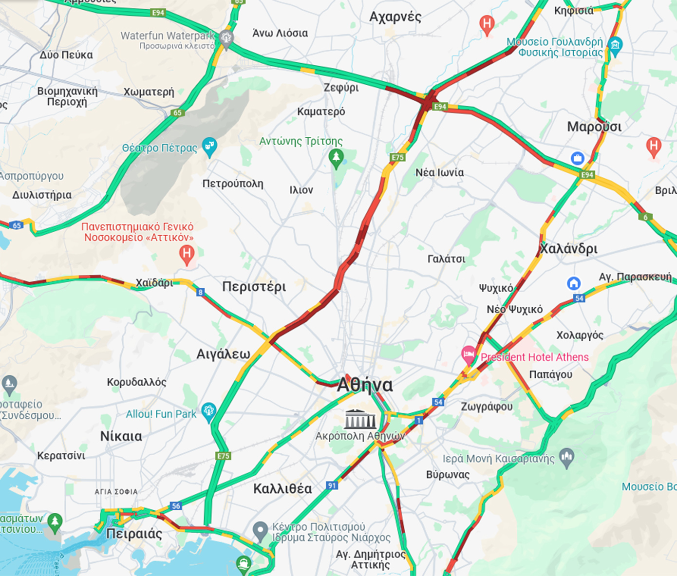 Δείτε τον χάρτη με την κίνηση τώρα στους δρόμους…