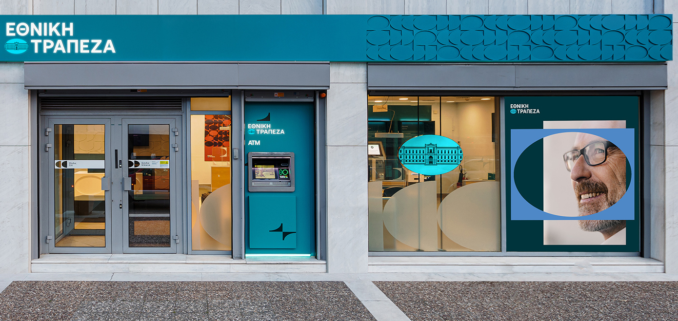 Με πλούσια χρωματική παλέτα, με ανανεωμένο λογότυπο και εικόνα των καταστημάτων και με σχήμα-σύμβολο την έλλειψη, η Εθνική Τράπεζα υπογραμμίζει τη συμπερίληψη με σκοπό την ατομική και συλλογική ανάπτυξη, τον σεβασμό της στο παρελθόν και τη δέσμευσή της να συνεχίσει να στηρίζει εμπνευσμένα και με υπευθυνότητα τους πελάτες και τους εργαζόμενους.