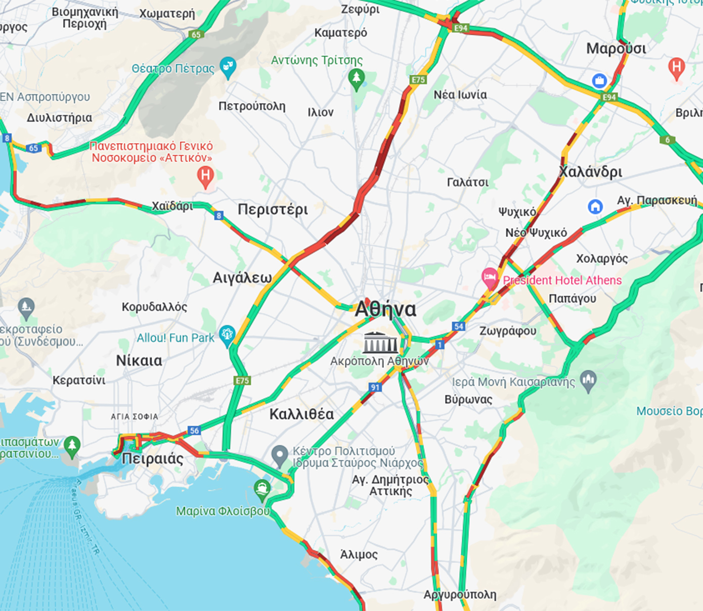 Δείτε τον χάρτη με την κίνηση τώρα στους δρόμους…