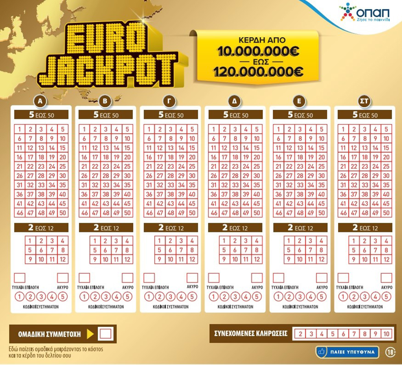 Ο ΟΠΑΠ, η κορυφαία εταιρεία τυχερών παιγνίων στην Ελλάδα και μία από τις πλέον καταξιωμένες στον κλάδο της παγκοσμίως, φέρνει στη χώρα μας το Eurojackpot, το ευρωπαϊκό παιχνίδι που μοιράζει κέρδη έως και 120 εκατομμύρια ευρώ.