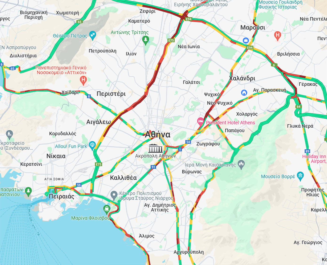 Δείτε τον χάρτη με την κίνηση τώρα στους δρόμους…