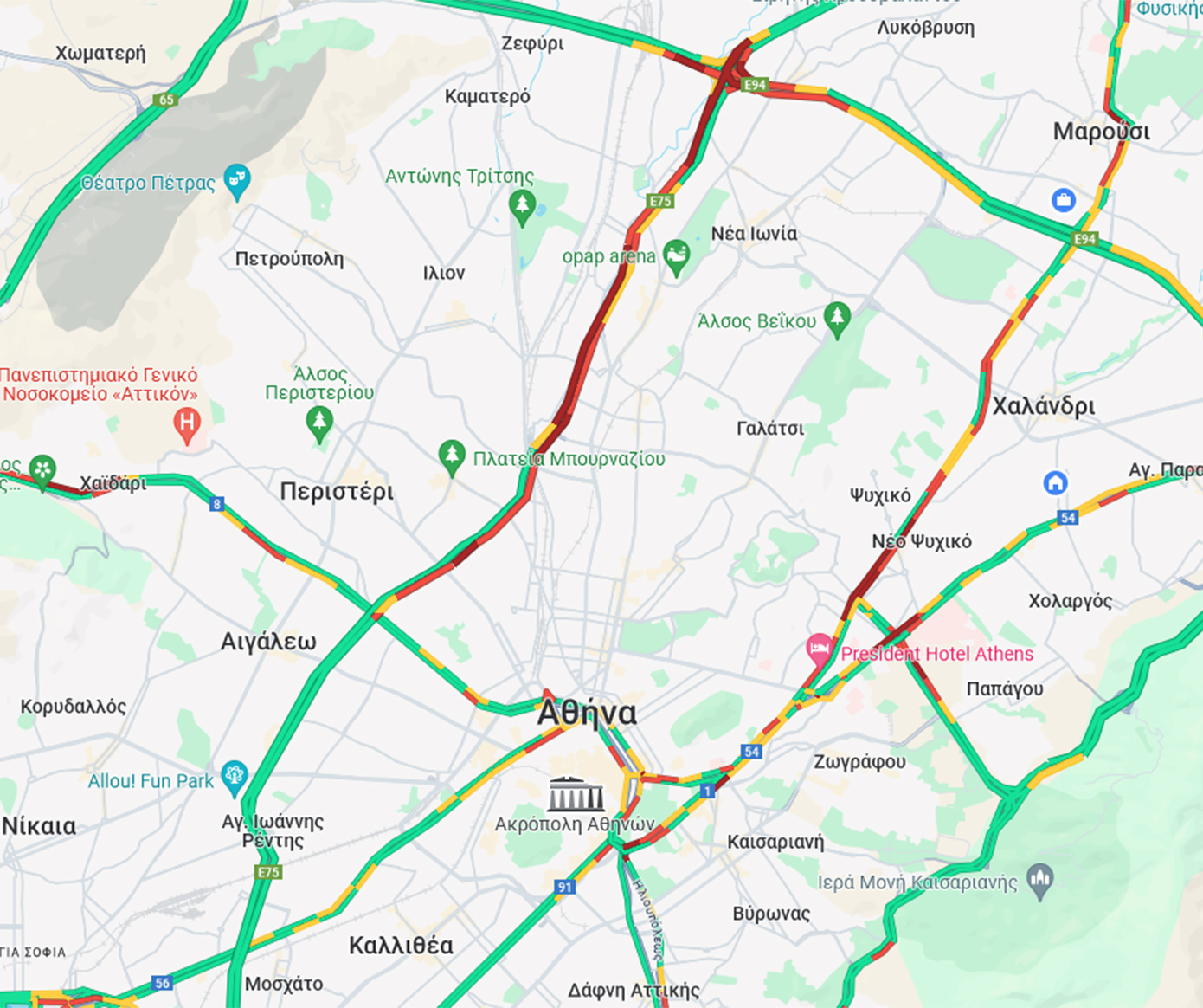Δείτε τον χάρτη με την κίνηση τώρα στους δρόμους…