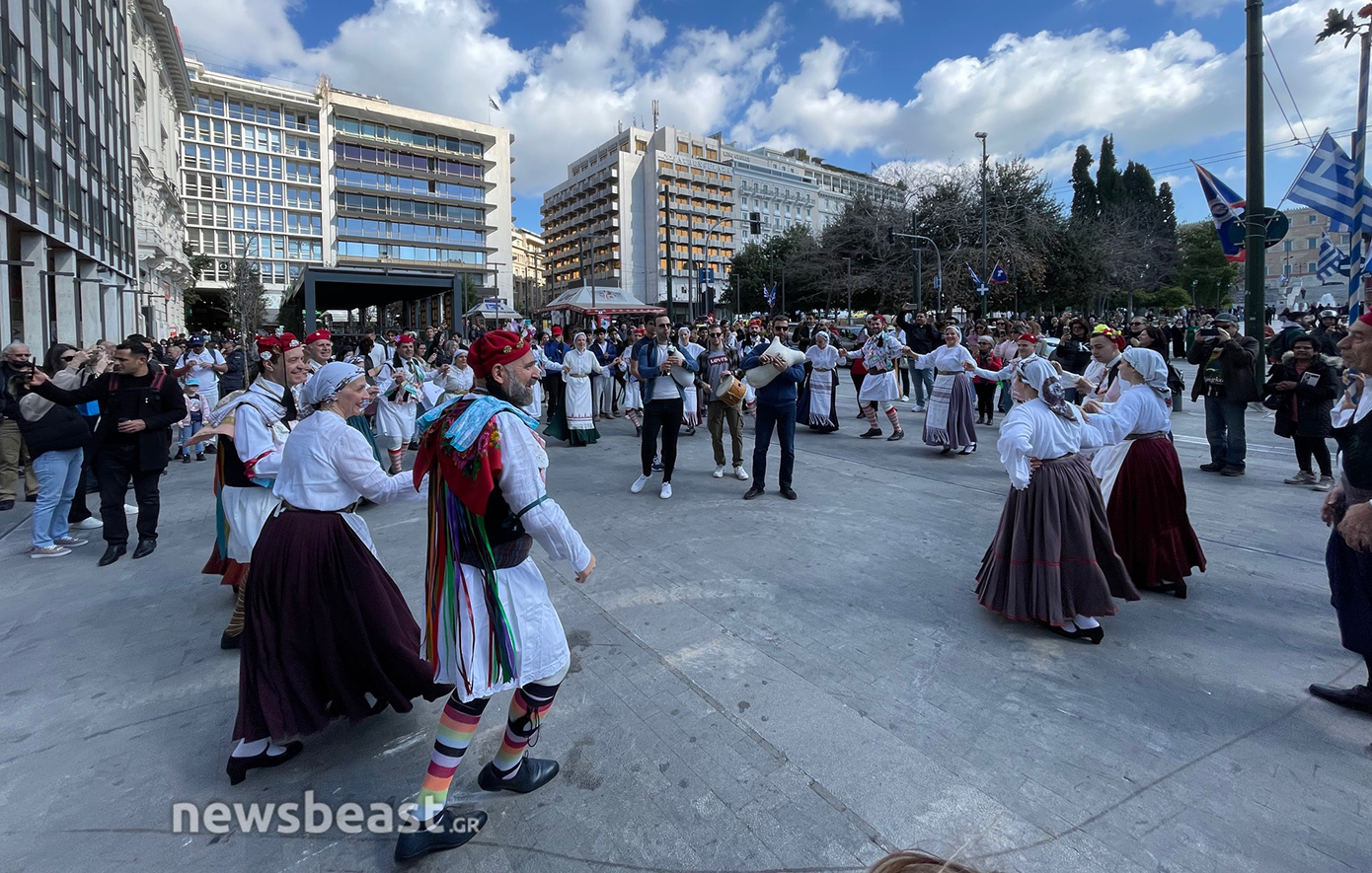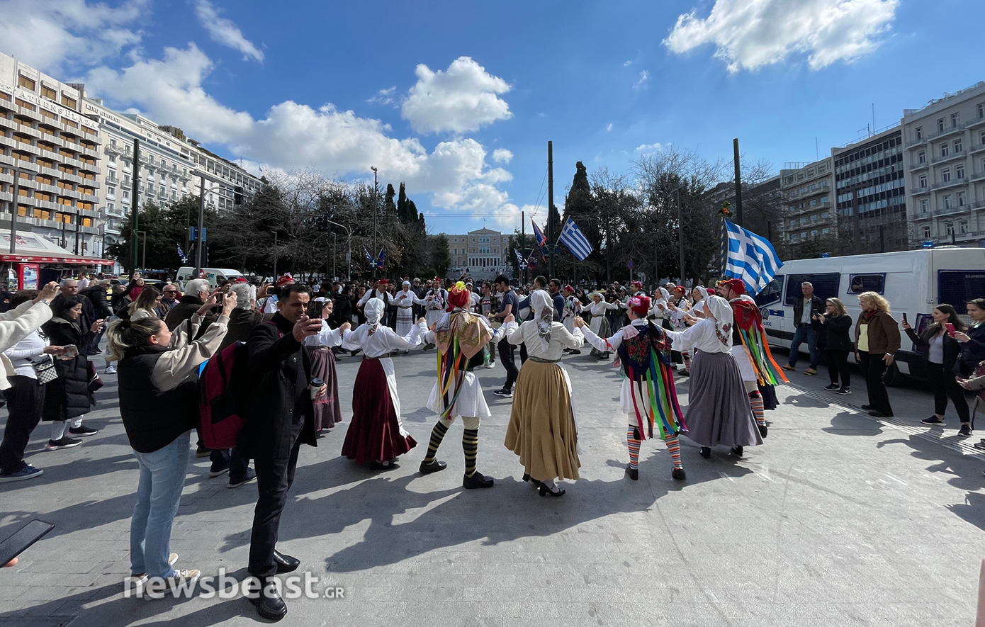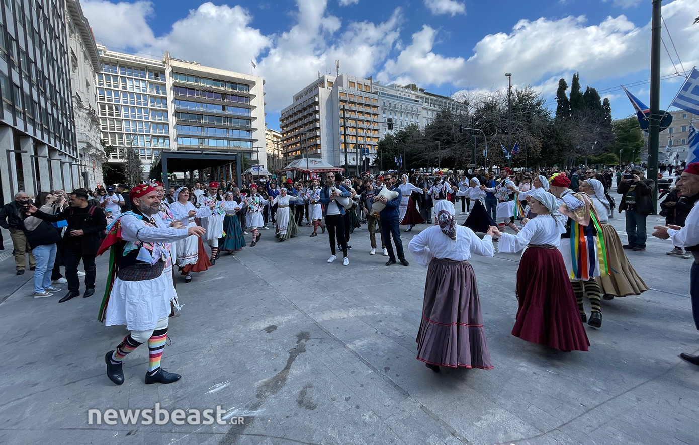 Όσοι εργάζονται στην ευρύτερη περιοχή ξέκλεψαν λίγα λεπτά για να παρακολουθήσουν τους χορούς, ενώ πολλοί είναι και οι Αθηναίοι, που με σύμμαχο τον καλό καιρό βρέθηκαν στο κέντρο της πόλης για μια χαλαρή βόλτα.