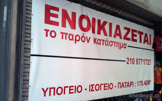 Και το ότι ο κόσμος δεν μπαίνει στα μαγαζιά αποδεικνύει τους λόγους που υπάρχουν πολλές επιγραφές με τη λέξη: «Ενοικιάζεται».