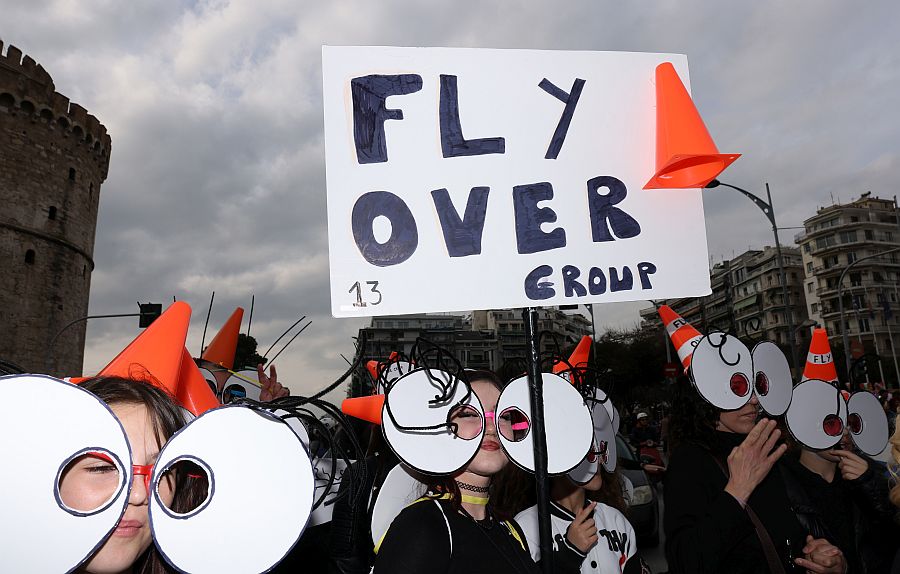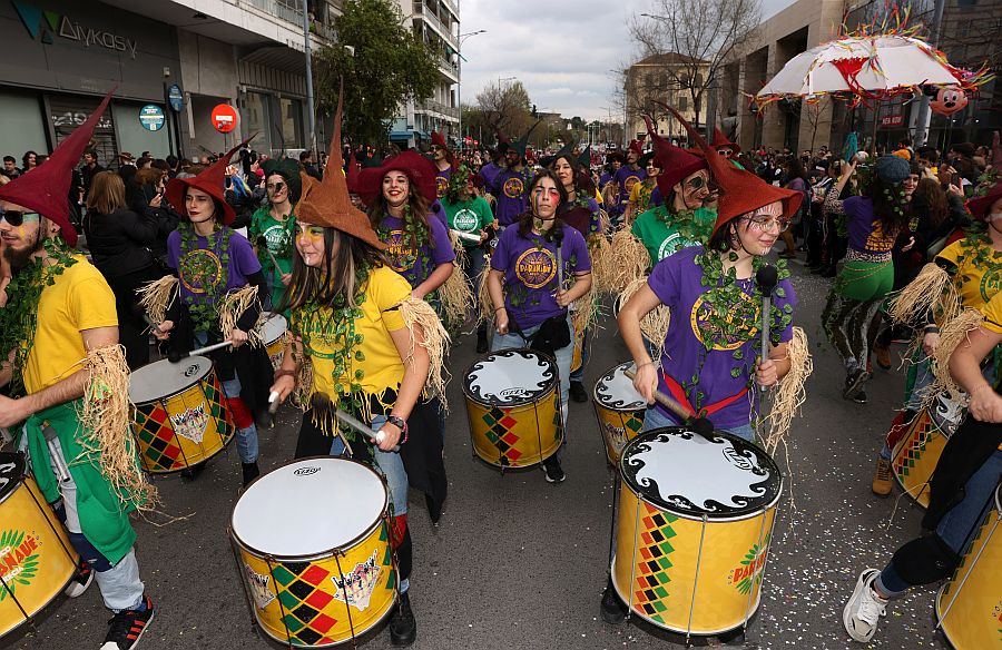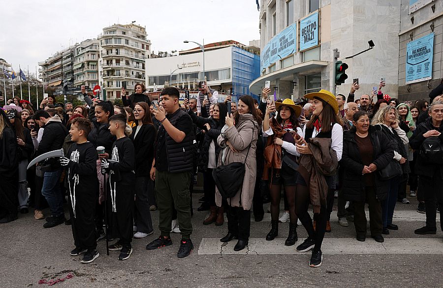 Μικροί και μεγάλοι, μασκαρεμένοι τιμολόγια ρεύματος, πιτόγυρα, κουλούρια Θεσσαλονίκης, τρίγωνα Πανοράματος αλλά και Flyover, με τύμπανα, χορούς και πολύ ρυθμό διέσχισαν τις οδούς Νικολάου Γερμανού και Τσιμισκή ενώ εκατοντάδες πολίτες είχαν συγκεντρωθεί και παρακολουθούσαν την παρέλαση, ενθουσιασμένοι.