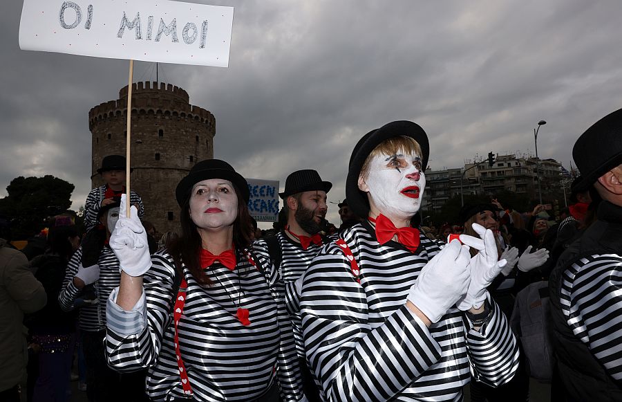 Απρόσμενα μεγάλη ήταν η συμμετοχή του κόσμου στο καρναβάλι που οργανώθηκε το απόγευμα της Κυριακής στη Θεσσαλονίκη, ύστερα από διαδικτυακό κάλεσμα. Χιλιάδες μασκαράδες κάθε ηλικίας συγκεντρώθηκαν στην πλατεία Λευκού Πύργου και ξεκίνησαν μεγάλη καρναβαλική παρέλαση.