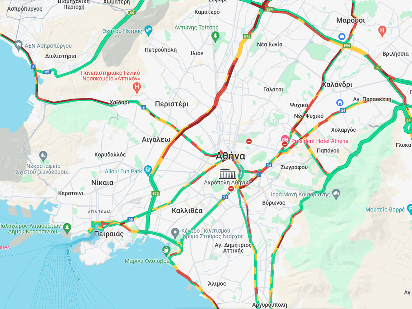 Ο χάρτης με την κίνηση τώρα στους δρόμους…