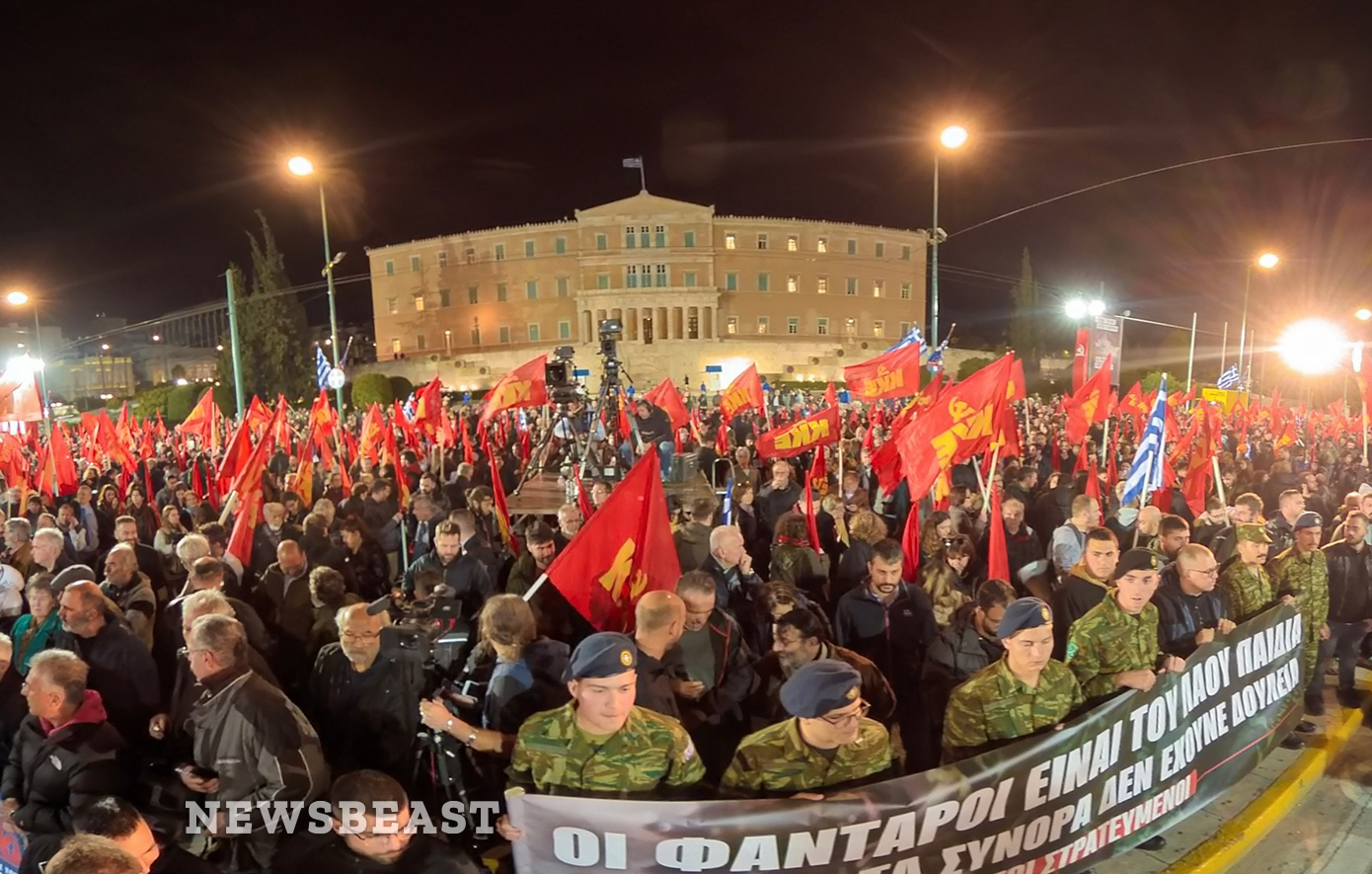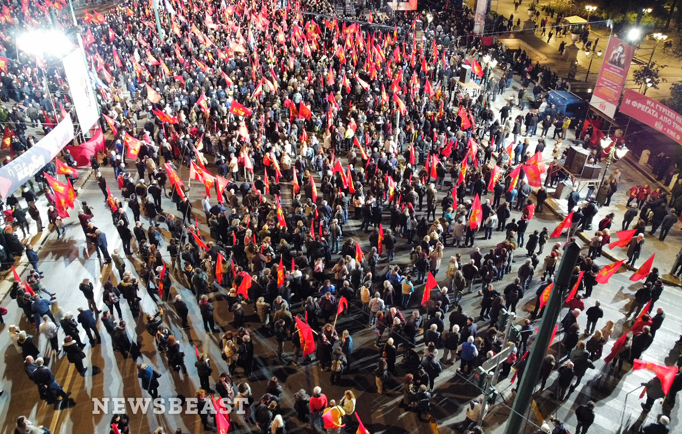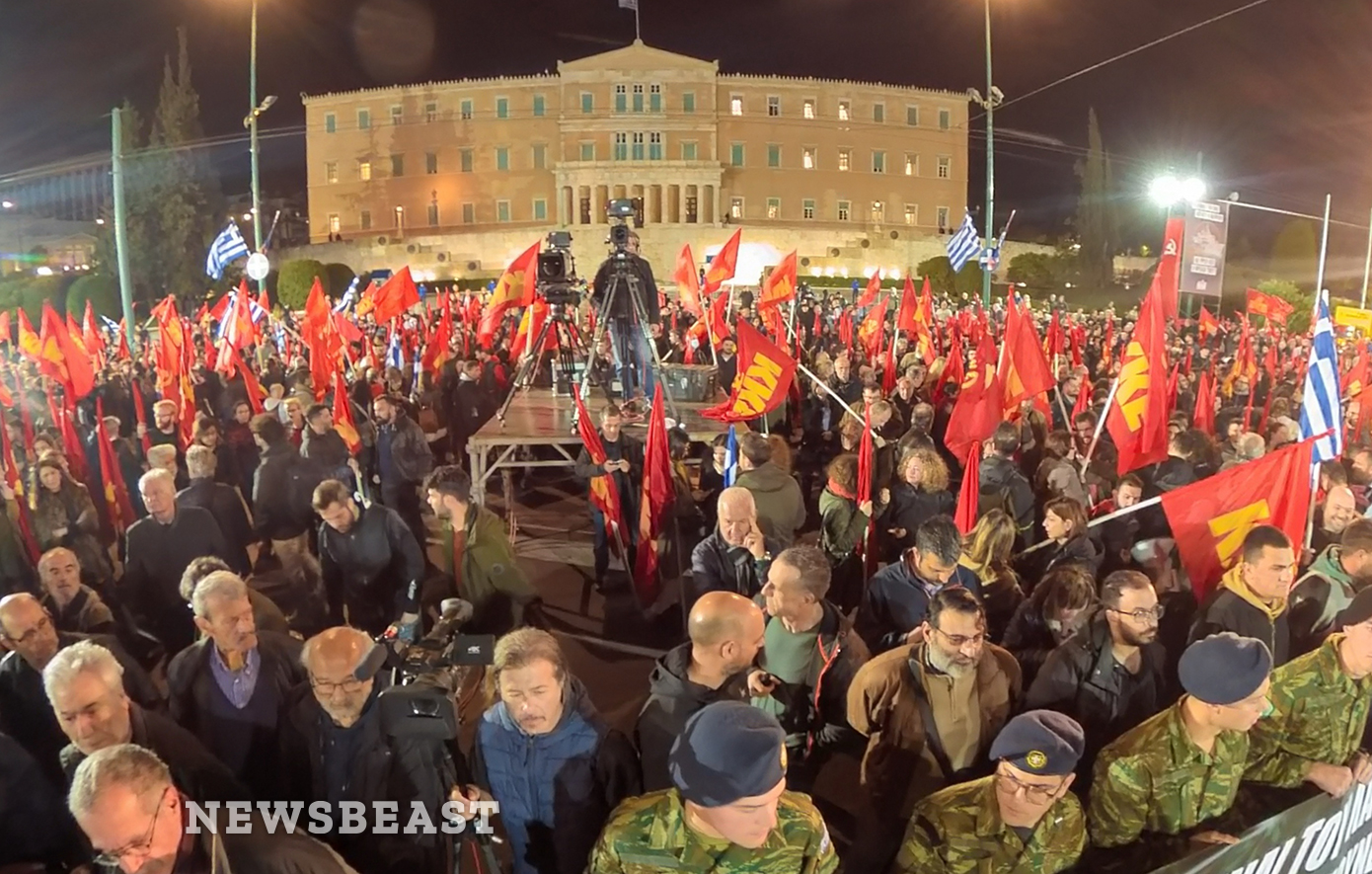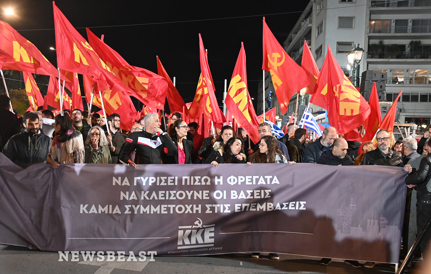 «Το ΚΚΕ από εδώ από το Σύνταγμα καλεί το λαό μας να μην επιτρέψει να συνεχίζεται αυτή η εγκληματική εμπλοκή» τόνισε ο Δ. Κουτσούμπας.