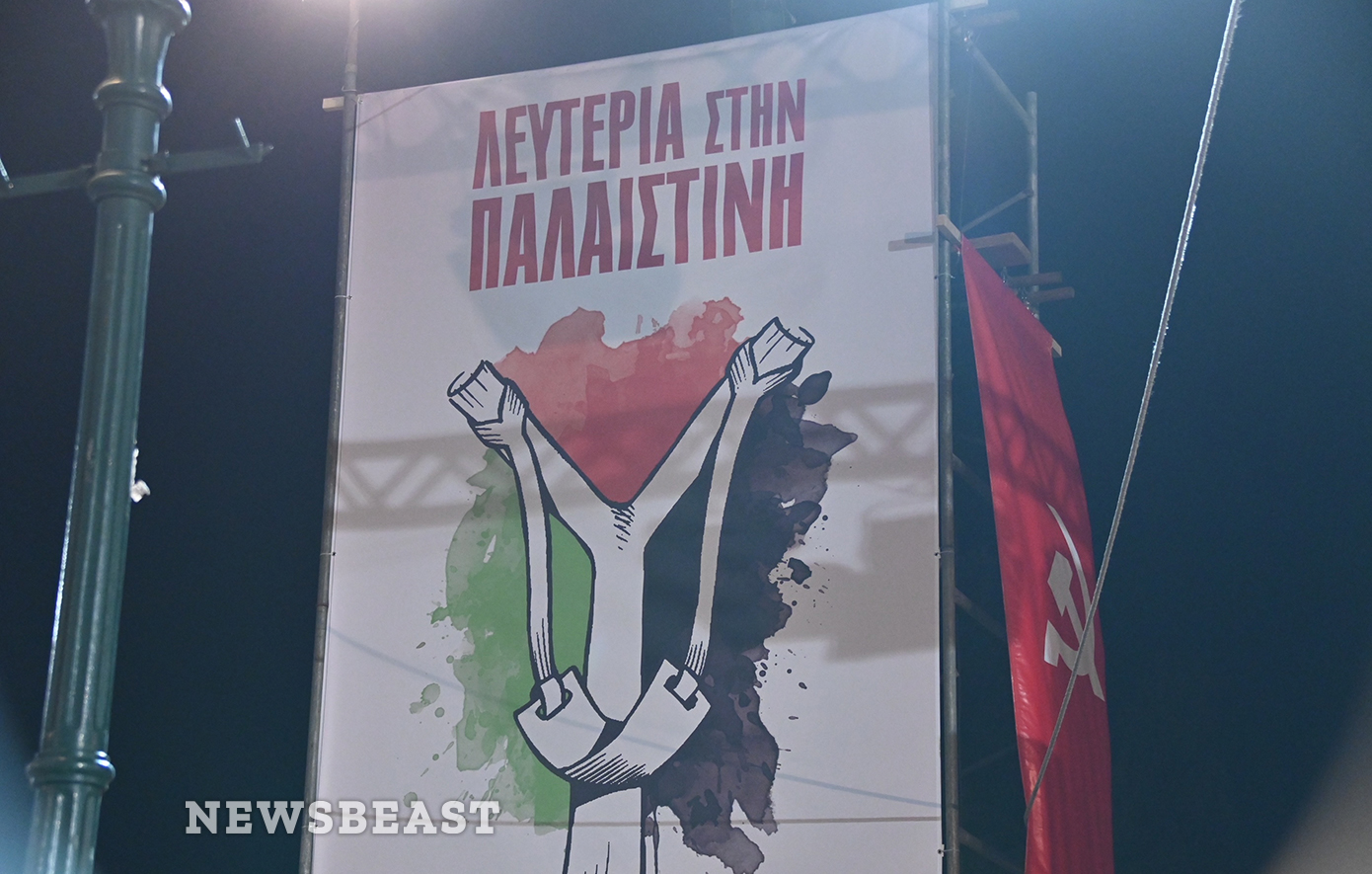 Κατήγγειλε την «επί πέντε μήνες γιγαντιαία στρατιωτική επιχείρηση του Ισραήλ με τις πλάτες των ΗΠΑ και της ΕΕ» και σημείωσε: «Το ΚΚΕ από την πρώτη στιγμή ξεκαθάρισε ότι μας χωρίζει μέγα ιδεολογικό και πολιτικό χάσμα με την Χαμάς. Σήμερα όμως, με πάνω από 30.000 νεκρούς στη Γάζα, έχει πια αποδειχθεί περίτρανα αυτό που λέγαμε και τότε, ότι η ψευδεπίγραφη “αυτοάμυνα” του Ισραήλ ήταν και είναι ένα χυδαίο πρόσχημα. Η ανεπανάληπτη θηριωδία που έχει εξαπολύσει, έχει καταλύσει κάθε γραπτό ή άγραφο κανόνα πολέμου, βομβαρδίζοντας νοσοκομεία, κατοικίες, σχολεία, τεμένη κι εκκλησίες».